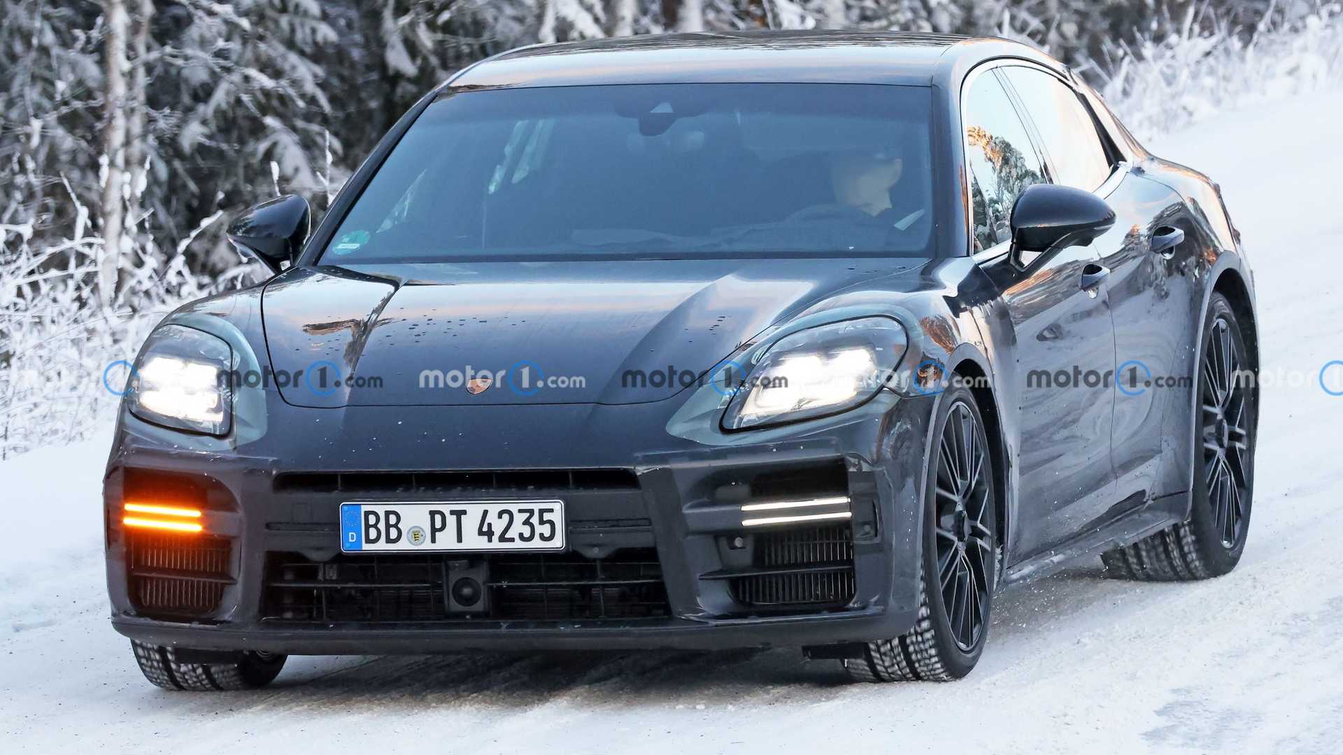 تظهر مقدمة بورش باناميرا مع مصد أمامي مزود بالعديد من القطع باللون الأسود لإخفاء التفاصيل التصميمية، ولكن تظهر بشبك أمامي أكبر حجماً من النسخة الحالية من باناميرا، بالإضافة لحصولها على مصابيح أمامية مزودة بأغطية تمويهية لإخفاء التصميم الخاص بها.