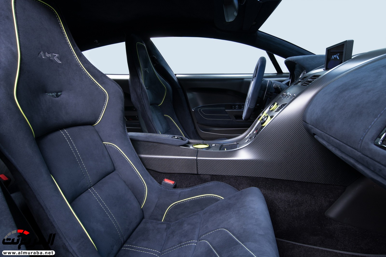 بالنسبة لقمرة الرابيد فتحتوي على مقعدين من الألياف الكربونية الخفيفة بالأمام، محاطين بجلد ألاسانترا الفاخر مع لمسات خضراء خفيفة، كما استخدمت أستون مارتن الألياف الكربونية في الكونسول الأوسط وأغلفة الأبواب.