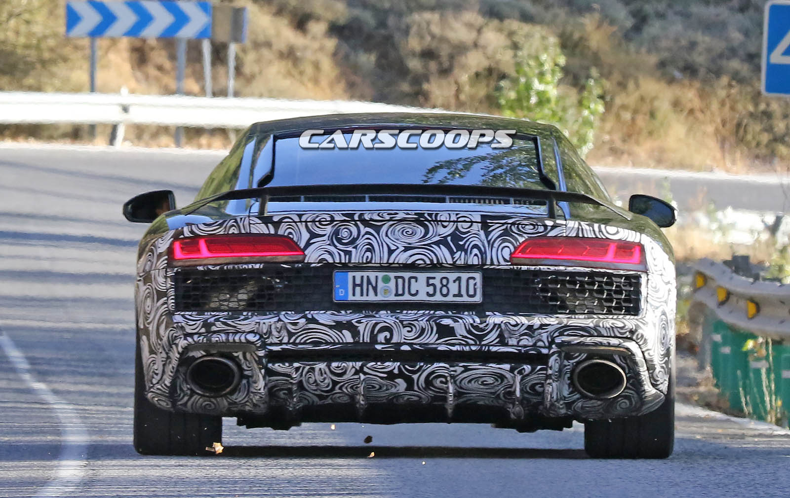 بالإضافة إلى ذلك فالسوبركار لديها عوادم واسعة للغاية، وهو ما يؤكد أنها هي R8 GT المرتقبة، والتي ستنزل على الساحة بقوة وأداء مكافيء للامبورجيني هوراكان بيرفورمانتي حسب المصادر، بكل الأحوال دعونا ننتظر ونترقب معًا إذا ما كان ستصل لتطلعاتنا أم لا.