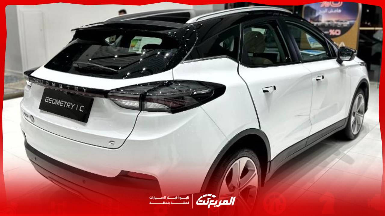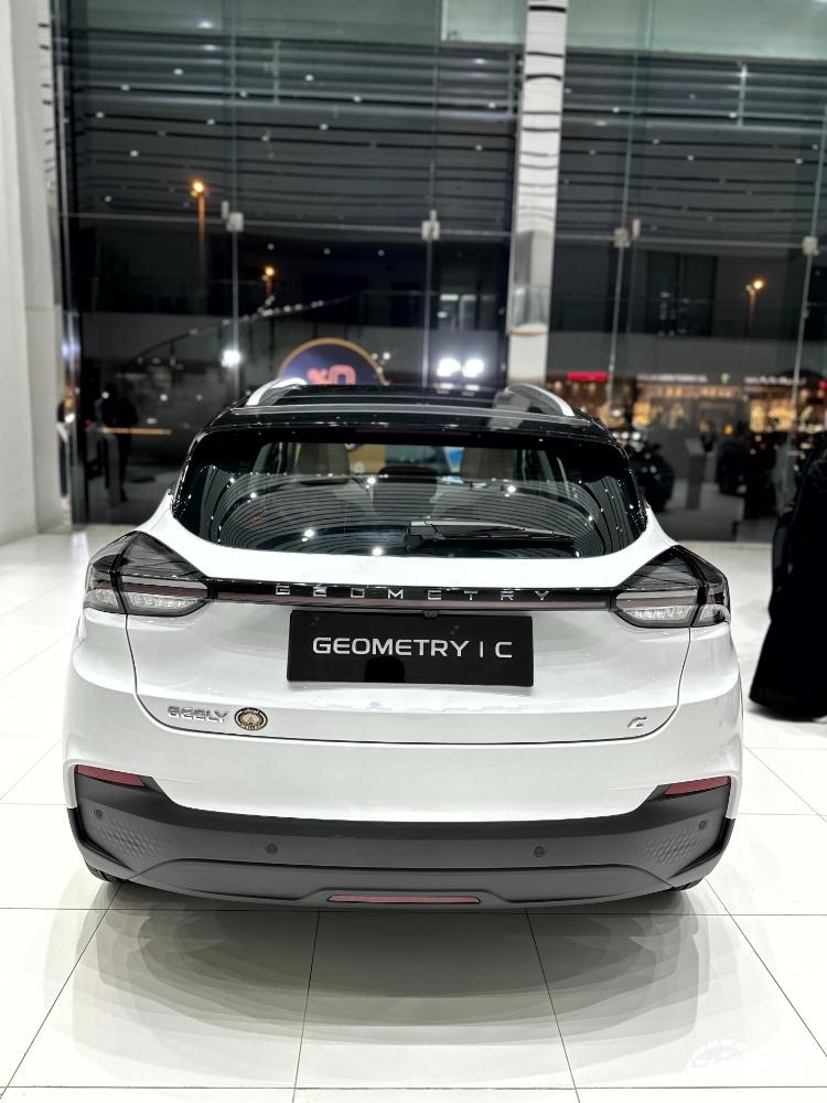 وفي الخلف، جاءت جيومتري سي مع طابع رياضي نلاحظه في اللمسات الديناميكية بالإضافة للمصابيح الخلفية العريضة التي جاءت متصلة ببعضها البعض من خلال شريط إضاءة أنيق من الـ LED، وحصلت على صندوق خلفي بتحكم كهربائي.
