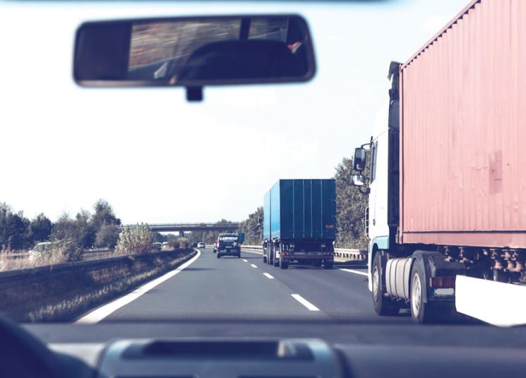 القيادة بجانب الشاحنات
