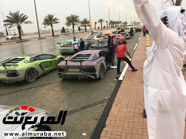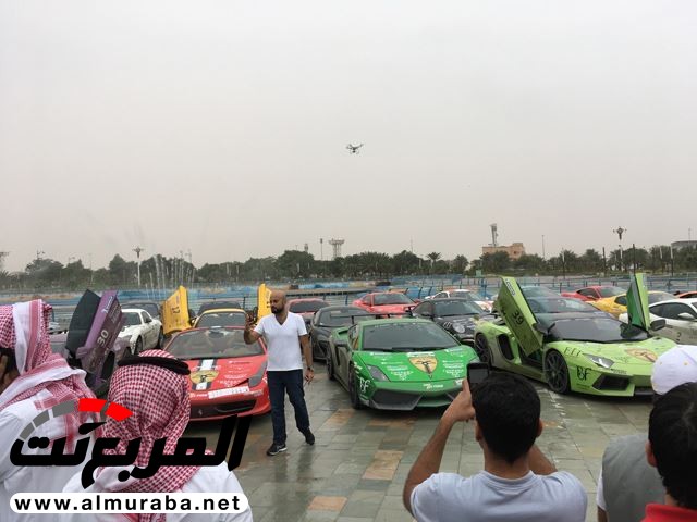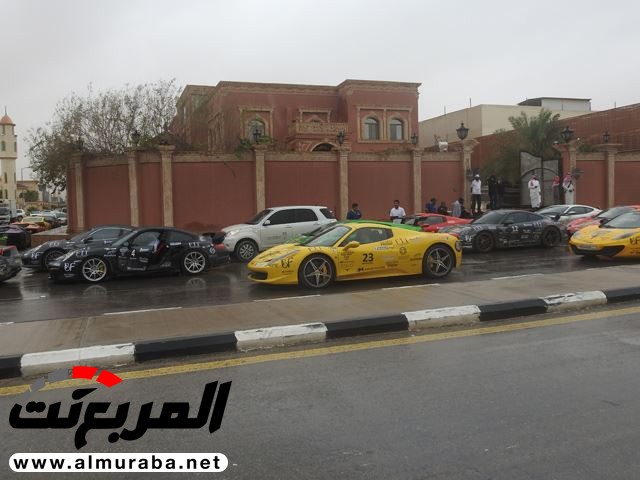 ممثلون من موقع Carbuzz شاركوا في الرحلة داخل سيارة فيراري 458 سبايدر، والتي قادوها بسرعة تصل إلى 330 كيلومتر في الساعة، وعقب العواصف والسيول الغزيرة وصلت القافلة الخارقة إلى الحدود القطرية أخيرا.