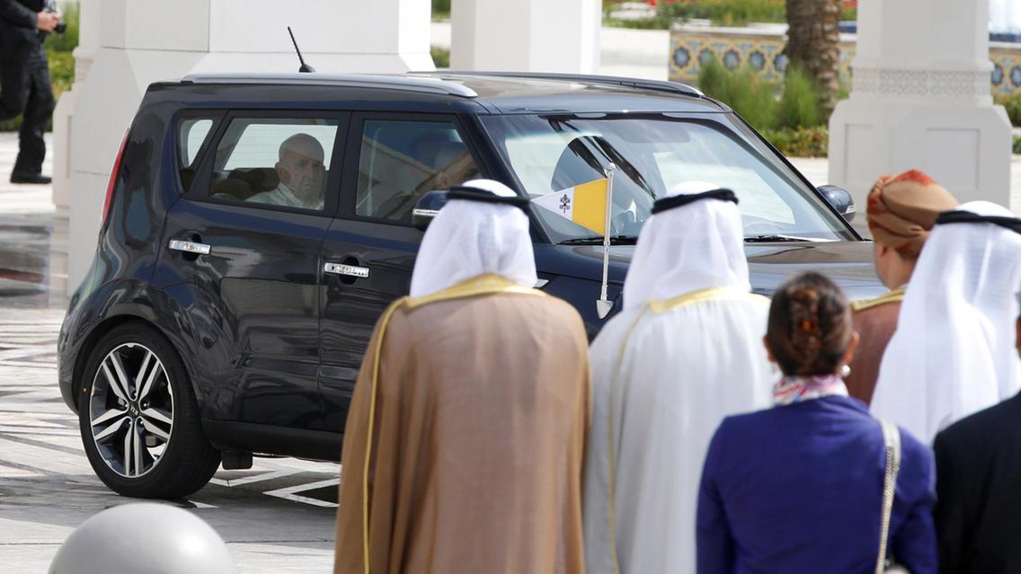 المربع نت – لطالما عُرف بابا الفاتيكان بالتواضع، حيث أثناء وصوله إلى القصر الرئاسي بالإمارات اختار كيا سول كي تقله إلى وجهته.