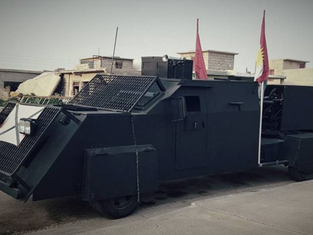 وقد نشر مقاتل سابق في البشمركة صورا على تويتر لهذه المركبات المدرعة المعدلة، والتي تبدو وكأنها قادمة من أفلام Mad Max.. وفي المقابل يعاني تنظيم الدولة الإسلامية من ضعف معداته وبدائيتها، حيث تمثل تويوتا هايلوكس وسيلة الانتقال الرئيسية للتنظيم.