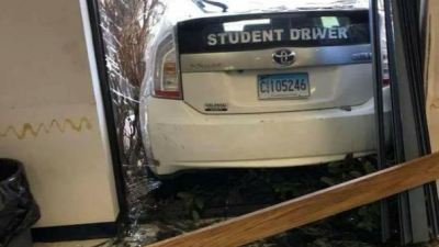 المربع نت – تشاهدون متدرب سياقة يحطم واجهة مكتب خلال اختبار القيادة، وذلك أثناء محاولته الرجوع للخلف، في ولاية كونيتيكت الأمريكية.