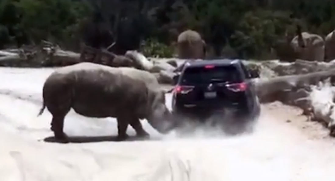 المربع نت – تم تصوير وحيد قرن ضخم أثناء صدمه بقوة لسيارة SUV في حديقة سفاري بولاية بويبلا المكسيكية يوم 30 يوليو الماضي بينما كان الزائرون يقودون سياراتهم في الحديقة أثناء تجوال الحيوانات بحرية.
