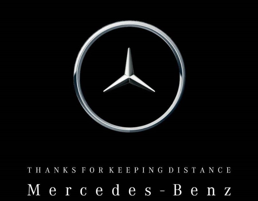 ولكن كيف دعمت شركات السيارات هذه الفكرة؟ وذلك عن طريق تغيير شعاراتهم بطريقة تعزز التباعد الاجتماعي.. أولا مرسيدس:
