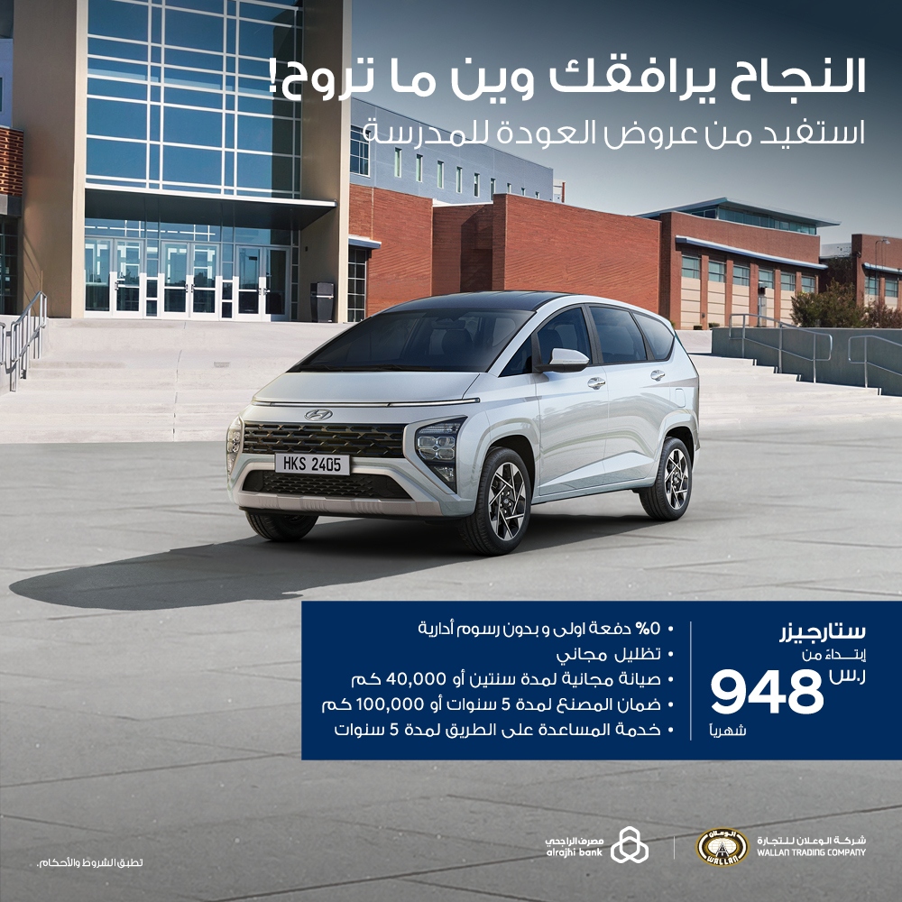 - هيونداي ستارجيزر بقسط يبدأ من 948 ريال.