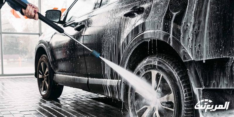 وبعد ذلك يتم غسل السيارة بالماء لإزالة الصابون والأتربة والمواد المُتعلقة غير المرغوب بها على الأسطح، ثم تجفيفها بقطعة قماش ناعمة، وبالانتقال إلى تنظيف السيارة بالبخار فيعتمد هذا النوع من التنظيف على استخدام البخار بضغط عالي لإزالة آثار عدم النظافة على المكونات، أو الدهون من سطح السيارة والأماكن الصعبة الموجودة في الداخلية.