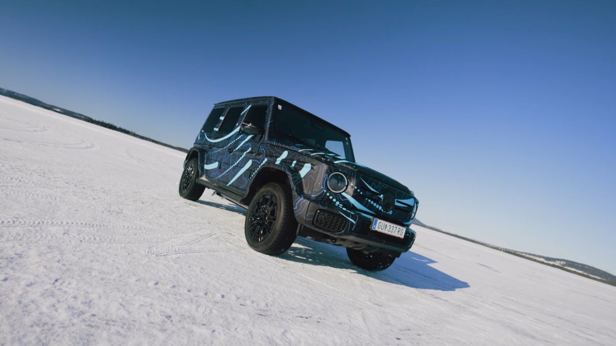 قامت مرسيدس بهذه التجربة الجديدة لسيارة جي كلاس الكهربائية في مركز اختبار شتوي لسيارات مرسيدس الجديدة على بحيرة متجمدة في السويد، واقتصرت التجربة على تجربة قيادة السيارة بسرعة بين علامات على الأرض لاختبار مدى ثبات سيارة الدفع الرباعي، بالإضافة إلى القيادة بسرعات تتجاوز 100 كم/ ساعة على منعطفات حادة، وفي النهاية قام كالينيوس باستعراض قدرات السيارة على الدريفت.