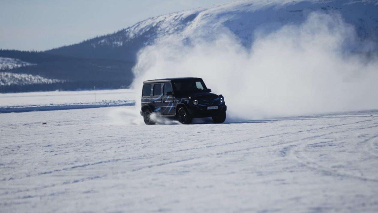 استعراض قدرات مرسيدس جي كلاس الكهربائية على الثلج