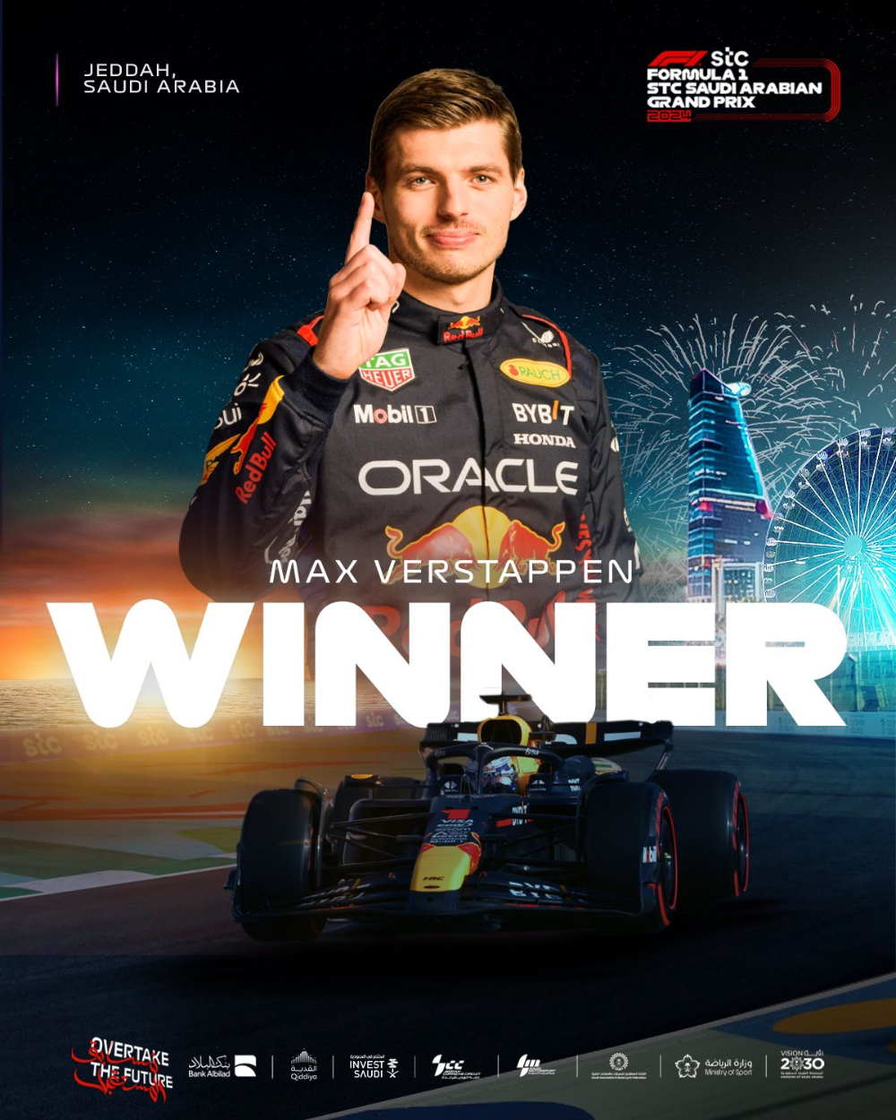 إن الفائز في سباق جائزة السعودية الكبرى للفورمولا 1 لعام 2024 هو ماكس فرستابن بحصده للمركز الأول، وهو مُمثل لفريق رد بول والذي لديه التاريخ الحافل خلال المشاركات السابقة له، وبالتحديد نجح في الفوز في بطولة العالم لسباقات فورمولا 1 لعدد 3 مرات.