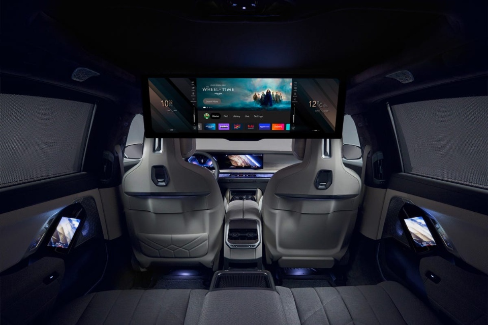تأتي شاشة بي ام دبليو الفئة السابعة بنظام تلفزيون أمازون فاير منصبًا عليها من المصنع، ومن خلاله تتوفر العديد من منصات المحتوى الترفيهي الذي يوفر محتوى بدقة 4K UHD في الوقت الحالي مثل أمازون برايم وHBO ماكس وهولو ونتفيلكس وتويتش ويوتيوب. ومن خلال الشاشة يمكنك أيضا لعب ألعاب الفيديو وتشغيل بث مباشر من قنوات التلفزيون، ويمكنك تحميل المحتوى مسبقا من أجل الاستمتاع به في الرحلة، كما يمكنك عرض معلومات عن الرحلة والوجهة.