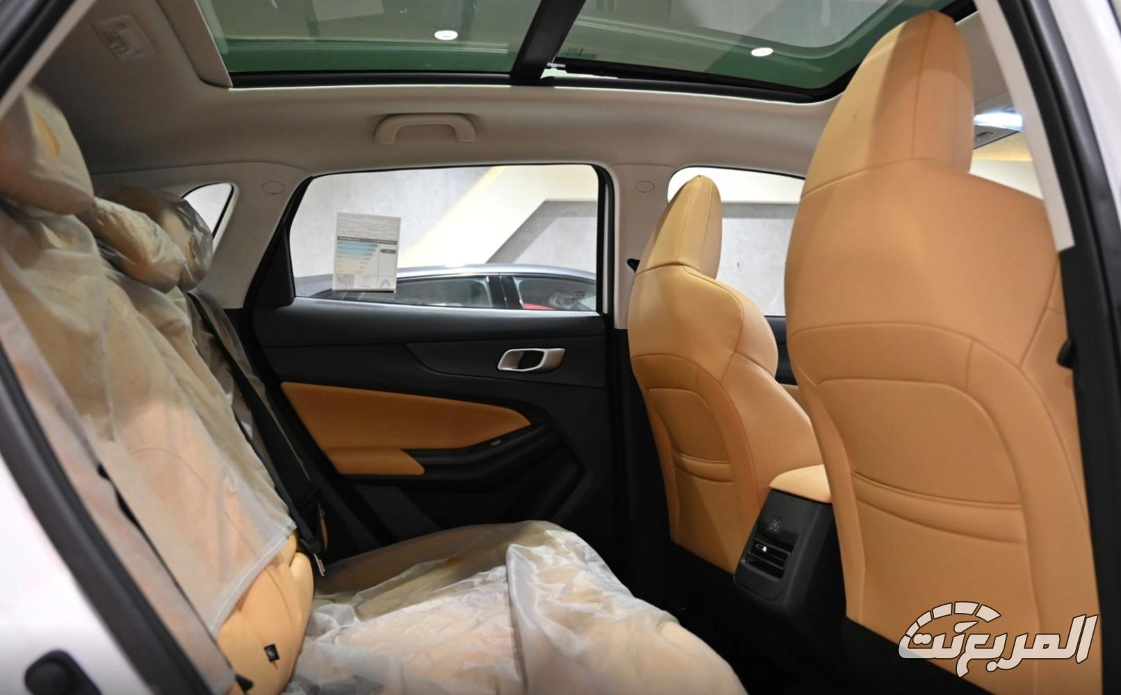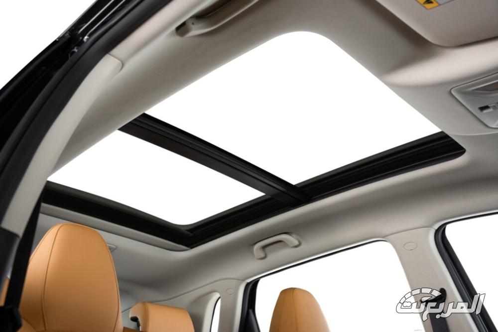 ونرى بداخل المقصورة عجلة قيادة متعددة الوظائف تأتي بتصميم أنيق، مع لمسات كرومية أنيقة نراها تزين الكونسول الوسطي بالإضافة إلى مقابض الأبواب، كما تأتي مع فتحة بانورامية للسقف توفر تجربة أكثر متعة.