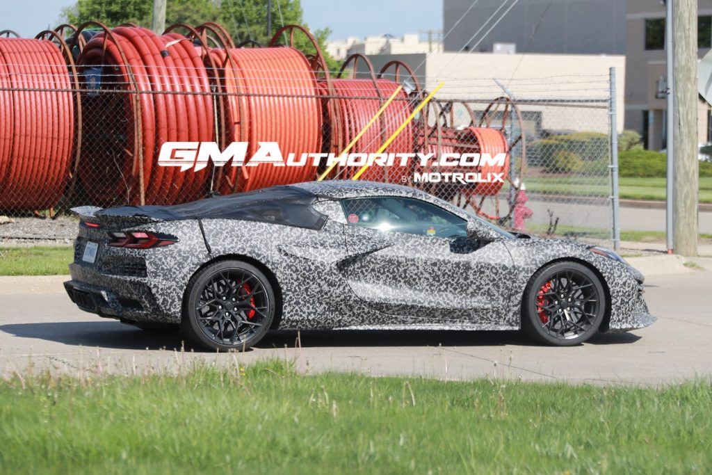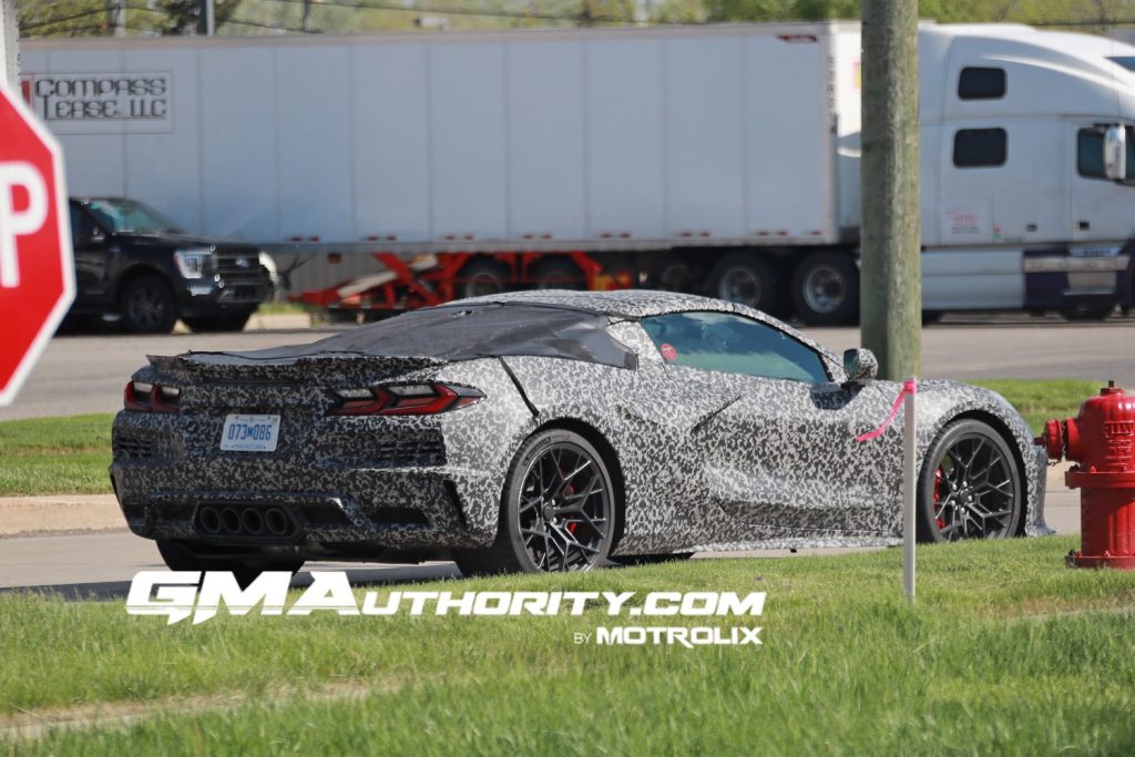 وتأتي السيارة بأربعة أنابيب عادم في منتصف الخلفية تماماً مثل كورفيت Z06، مع جناح خلفي أصغر نسبياً من نسخة ZR1 كوبيه الجديدة التي رُصدت مؤخراً في حلبة نوربورغرينغ الألمانية.