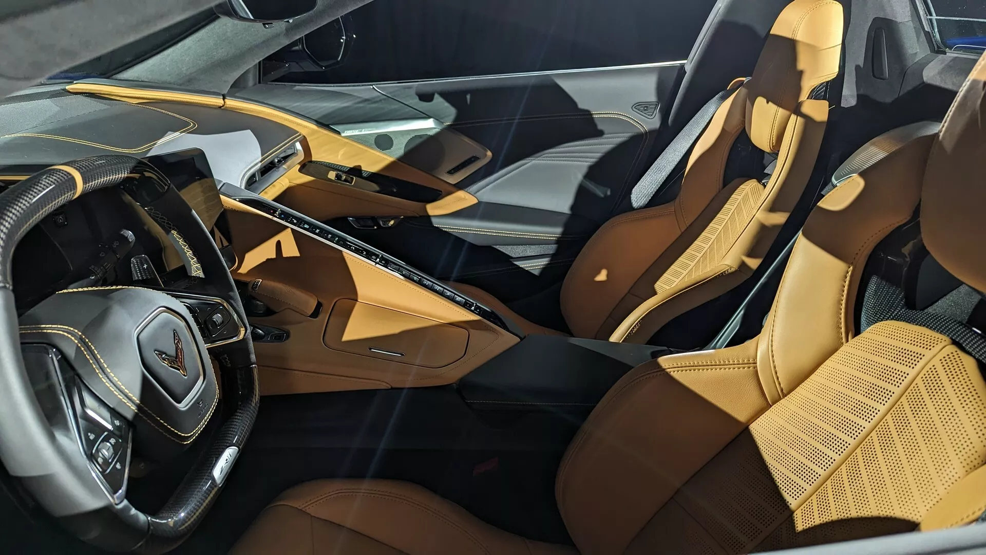 وننتهي مع الداخلية التي تبدو مألوفة ومشابهة لداخلية باقي فئات كورفيت، باستثناء شعار ZR1 الموزع على مختلف أنحاء الداخلية، وتأتي السيارة بلوحة عدادات رقمية 12 إنش، وشاشة معلومات ترفيهية 8 إنش بخدمات جوجل، مع مقاعد مدعمة بشكل جيد وزخرفات كربونية لا حصر لها.