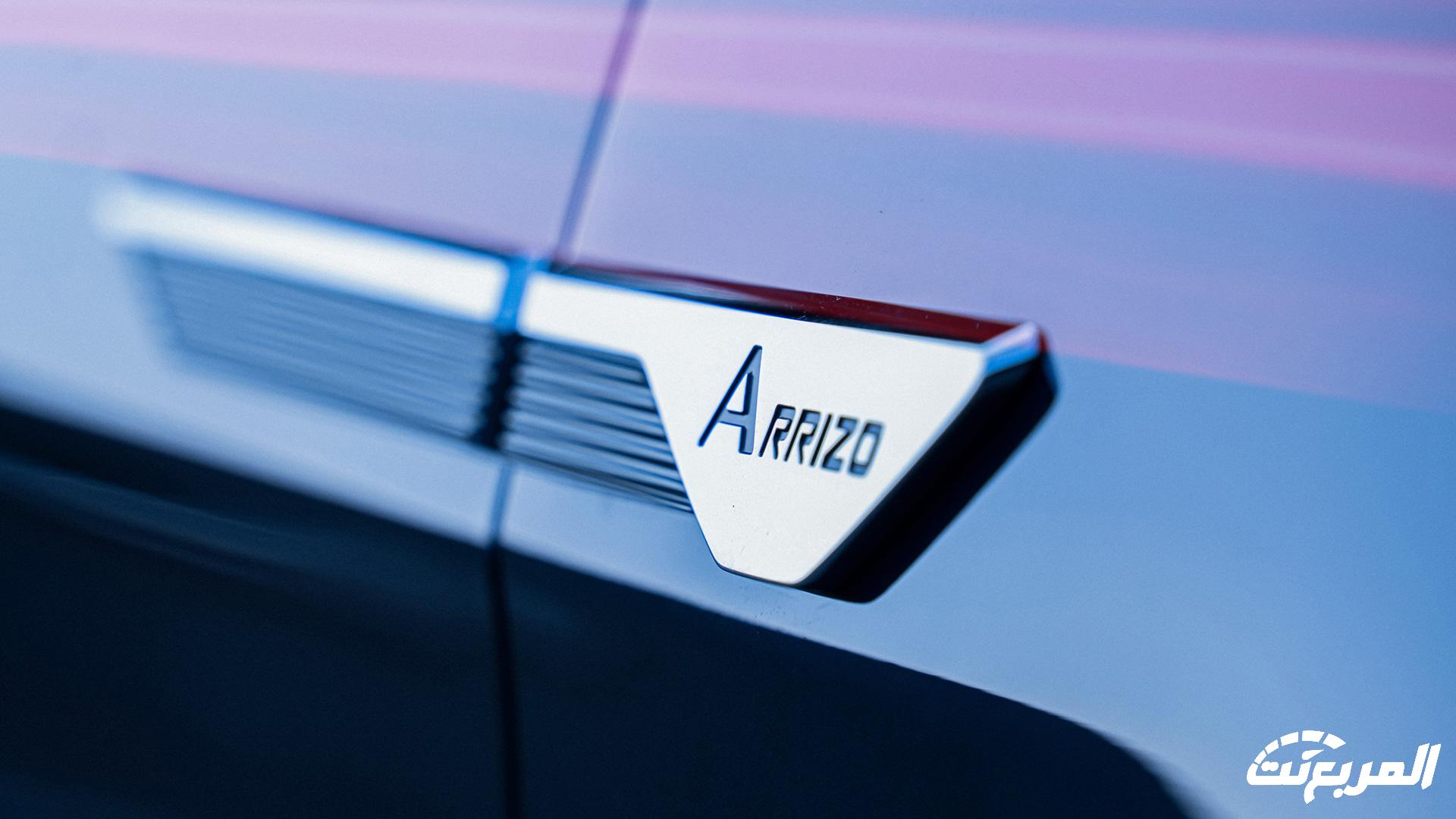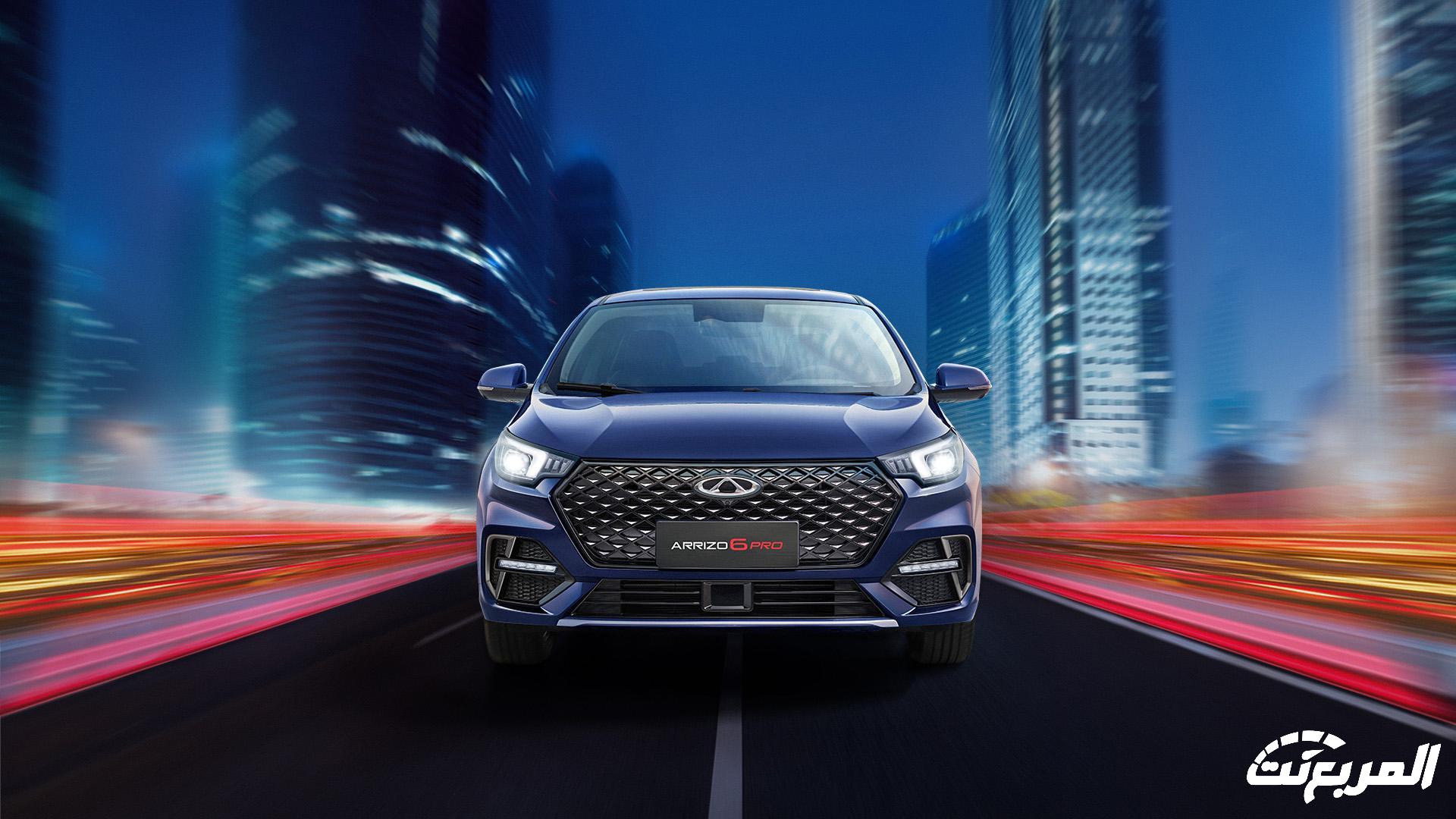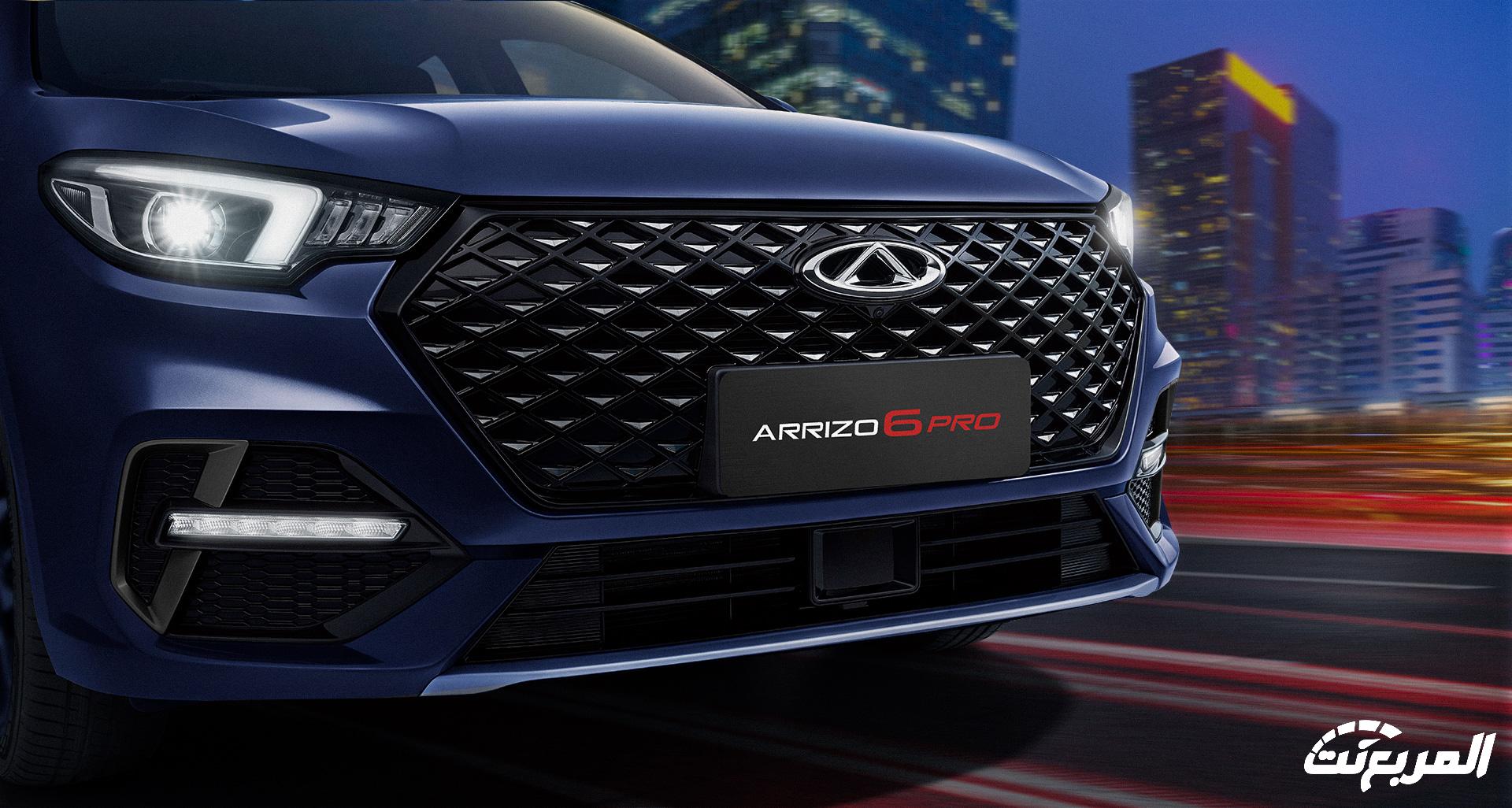 هذا وتشمل مقدمة السيارة مصد أمامي بارز بتصميم رياضي يأتي مع مصابيح ضباب أمامية وفتحات للتهوية لتعزيز تبريد المحرك، فيما تحصل على مشتت أمامي للهواء يساعد مع الخطوط البارزة على هيكل السيارة الخارجي على تعزيز أداء أريزو 6 برو على الطريق.