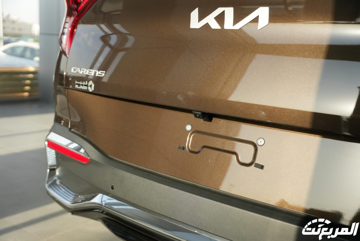 وبالرجوع للخلف نرى الواجهة الخلفية لـ كارينز والتي تحمل تصميم رياضي رياضي نراه من خلال الجناح الخلفي، كما تشتمل على مصابيح خلفية انسيابية متصلة مع بعضها من خلال شريط من الـ LED، ويأتي المصد الخلفي البارز باللون الأسود مع لمسات من الكروم تُضفي مظهر أكثر قوة.
