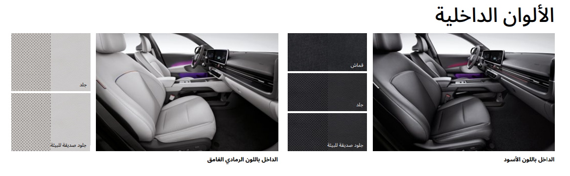 كما توضح صور هيونداي ايونيك 6 2025 ألوان وخامات المقصورة الأنيقة والتي جاءت كالآتي: