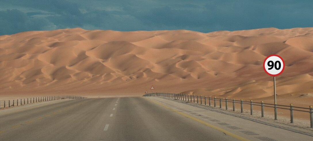 - استمرار السرعة المحددة بـ90 كم/ساعة لبقية أجزاء الطريق وصولًا إلى منفذ الربع الخالي بطول 196 كم.