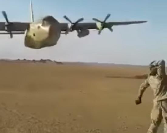 ففي مشهد نال أعجاب الجميع، تظهر طائرة من طراز C-130، ذات محركات متعددة، تحلق على ارتفاع منخفض، ولكن باتزان كبير، ما يدل على مهارة قائدها، وهو أحد طياري القوات الجوية السعودية.