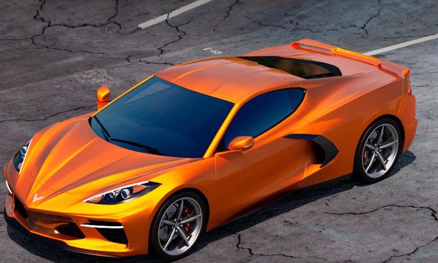 تم اختيار اللون البرتقالي اللامع للطلاء الخارجي بالتصميم مع الانتباه إلى أدق تفاصيل صور كورفيت C8 المموهة وإضافتها للتصميم، مثل الخطوط المنبعجة على الغطاء الأمامي، حيث يقترب التصميم الأمامي في أغلبه من الصور السابقة للغاية، بما يتضمن المرايا الجانبية.
