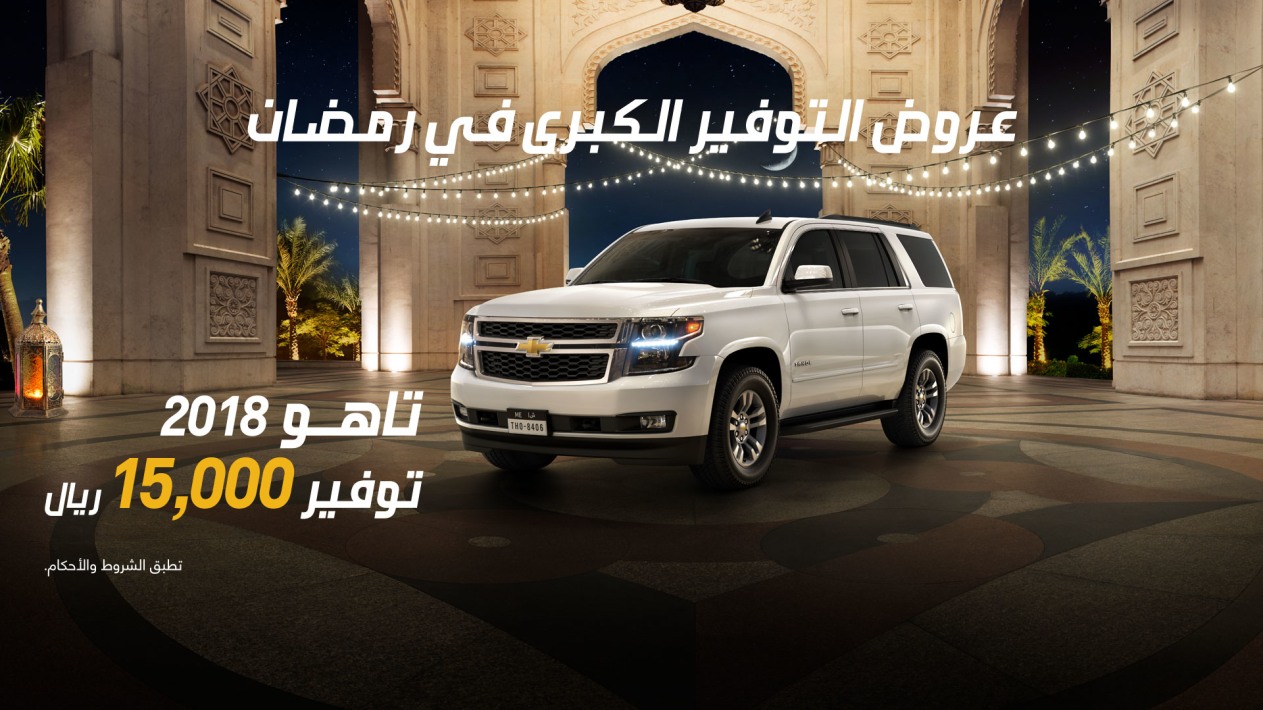 العرض على شفروليه تاهو 2018، ويبلغ التوفير في السعر النقدي 15,000 ريال.