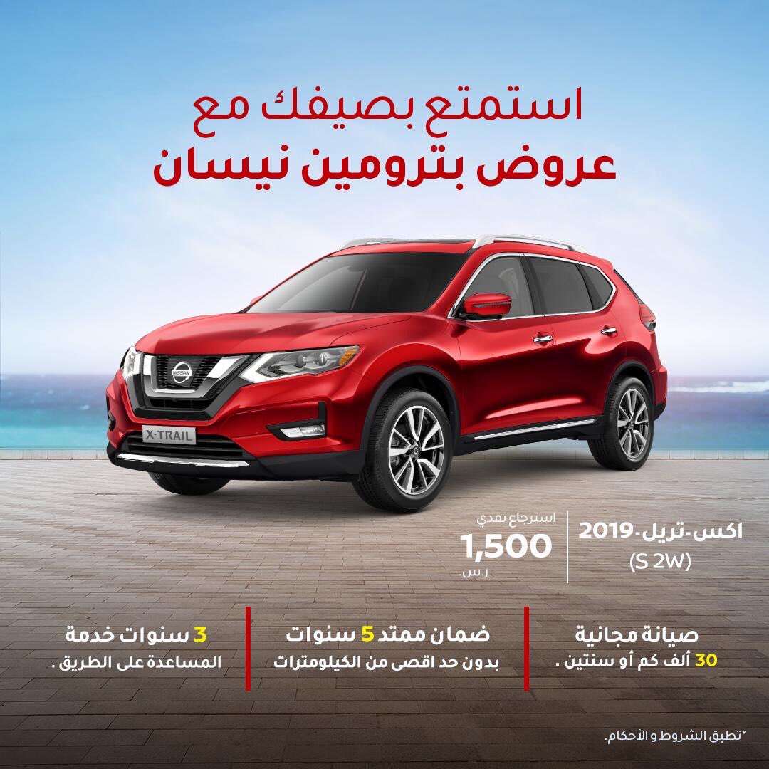 المربع نت – استمتع بصيفك مع عروض السيارات من بترومين نيسان، اغتنم العرض المميز واحصل على اكس تريل S 2W موديل 2019.