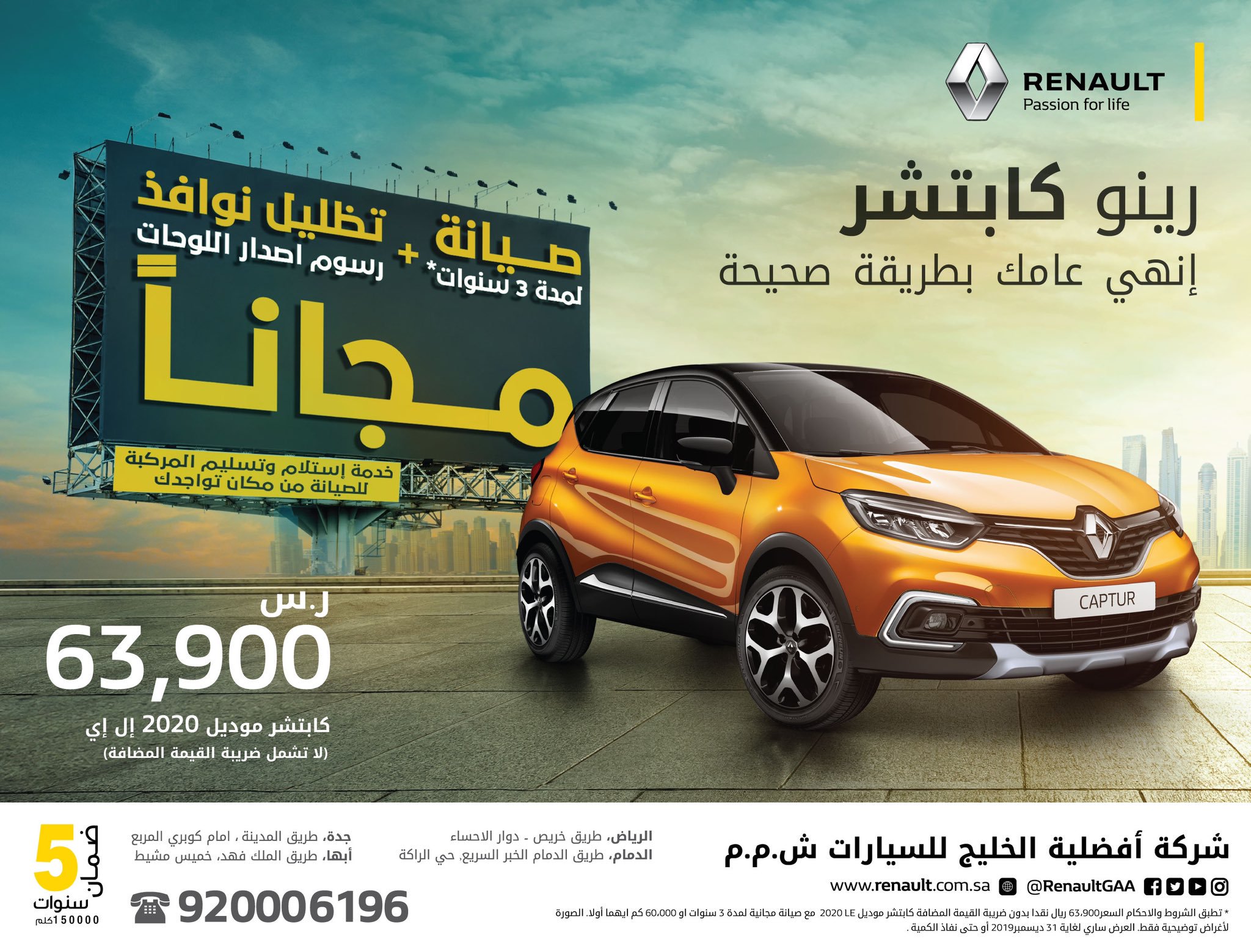 المربع نت – تمتع بأفضل عروض السيارات من شركة أفضلية الخليج للسيارات، واغتنم عروض نهاية السنة على رينو كابتشر موديل 2020.