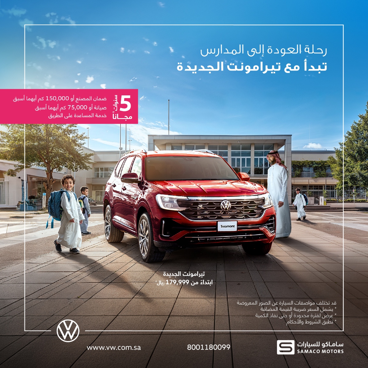 بمناسبة العودة للمدارس تقدم فولكس واجن ساماكو العرض على سيارة تيرامونت 2024.