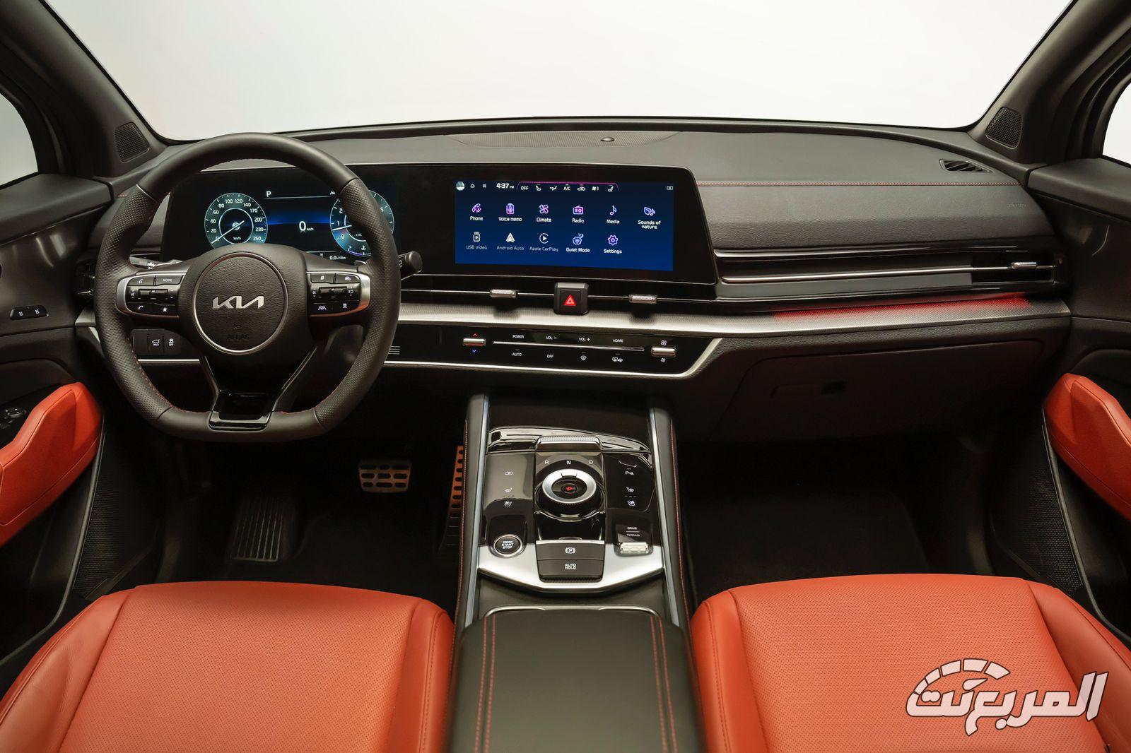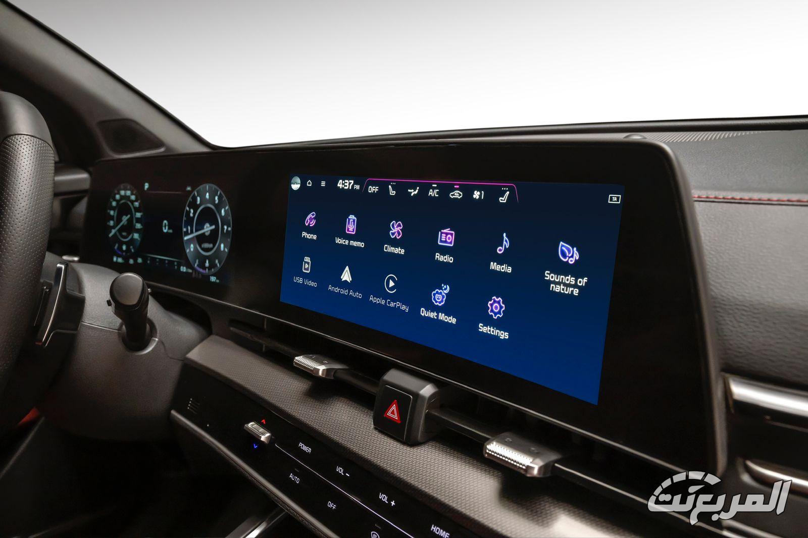 ستجد أن كيا سبورتاج الكبيرة تتشابه في تجهيزات الفل كامل مع سبورتاج العادية في كثير من الجوانب، أبرزها في المقصورة بداية من الشاشة المزدوجة 12.3 بوصة لكل من السائق ونظام المعلومات والترفيه.