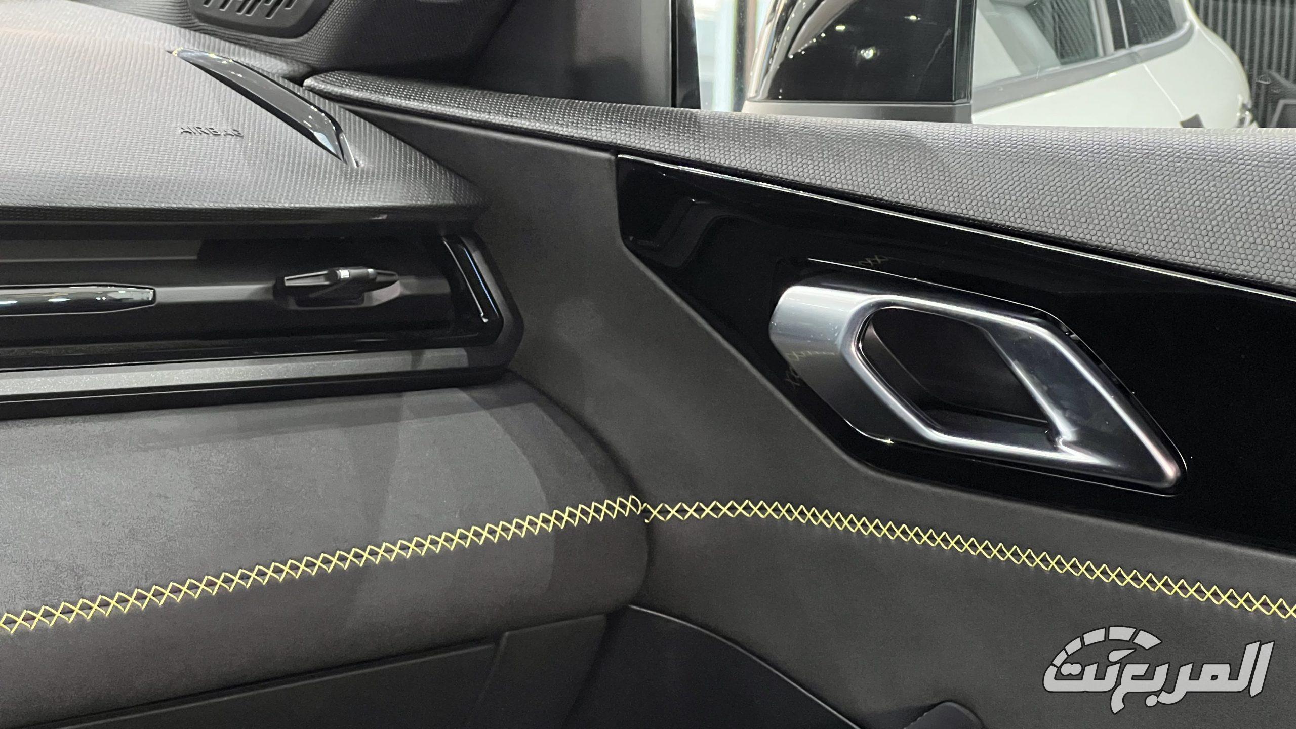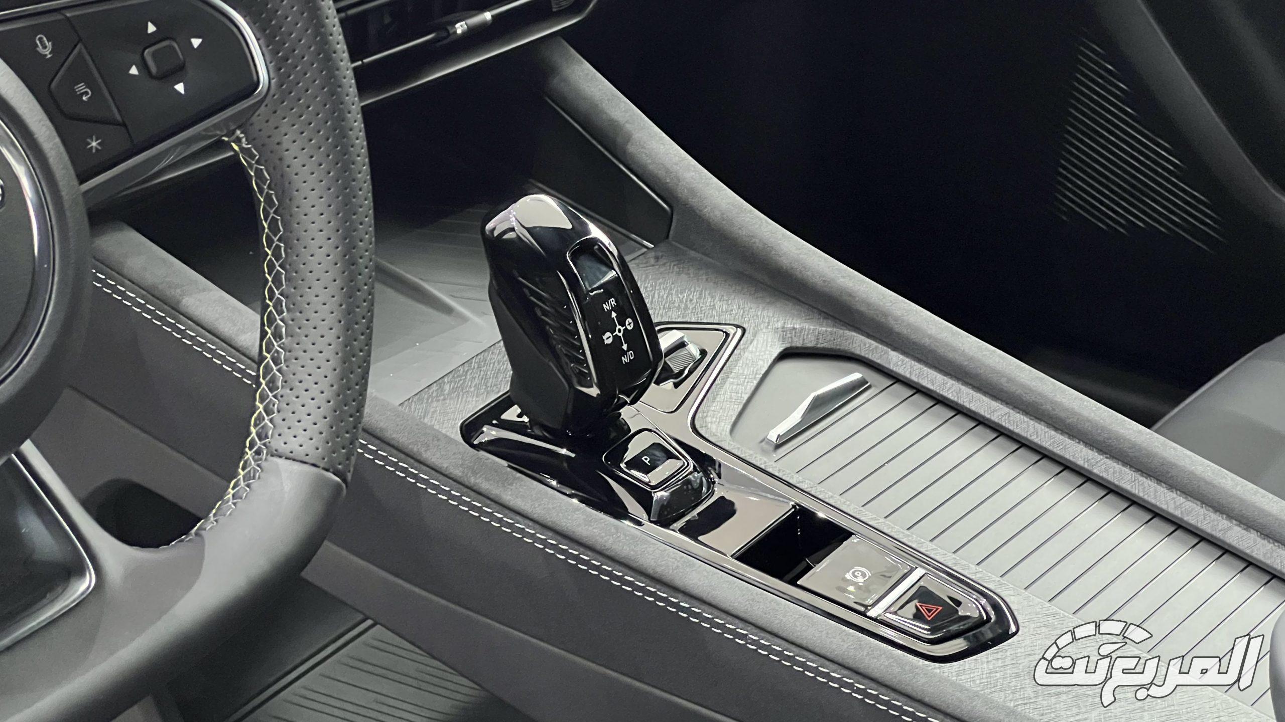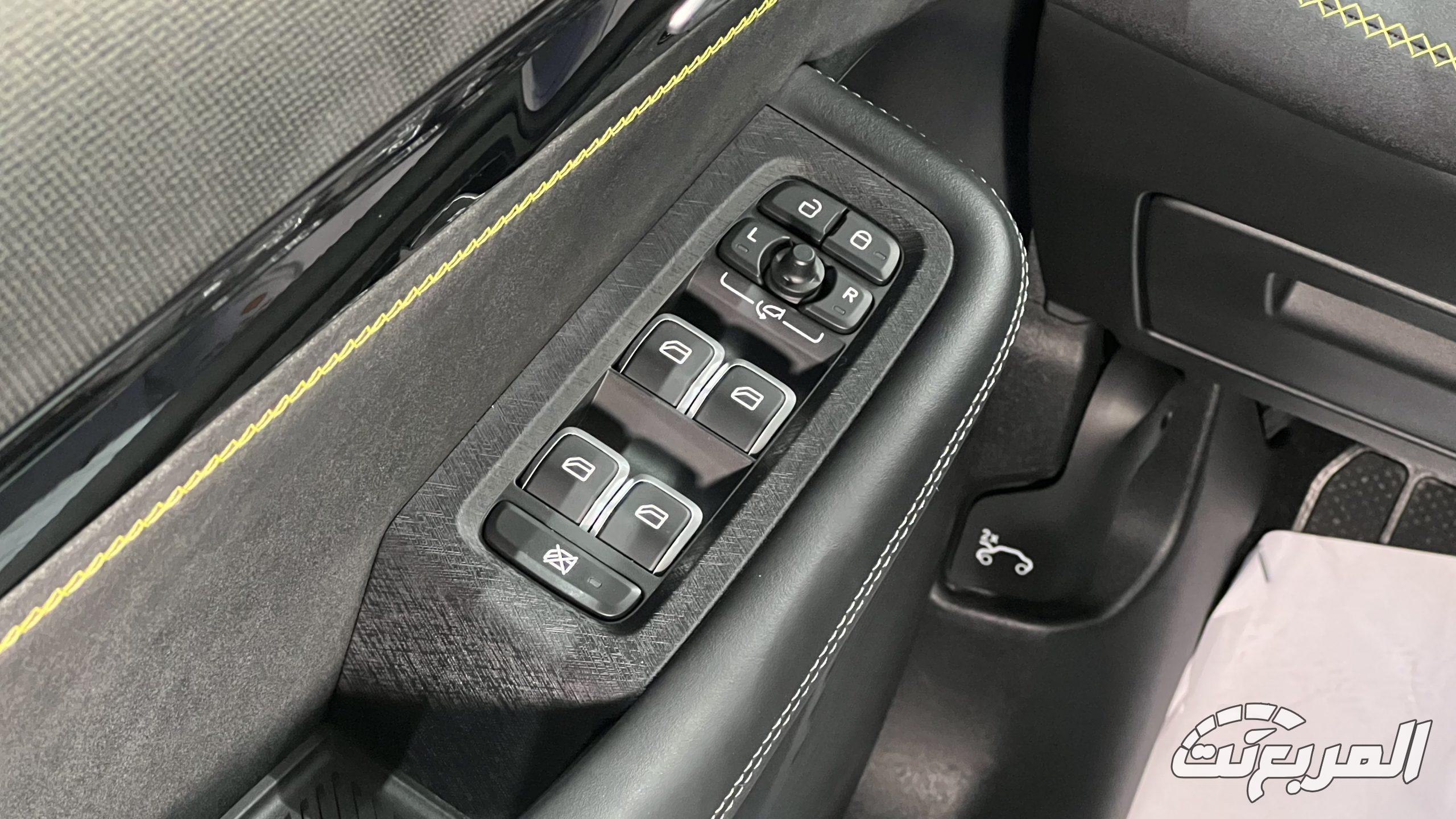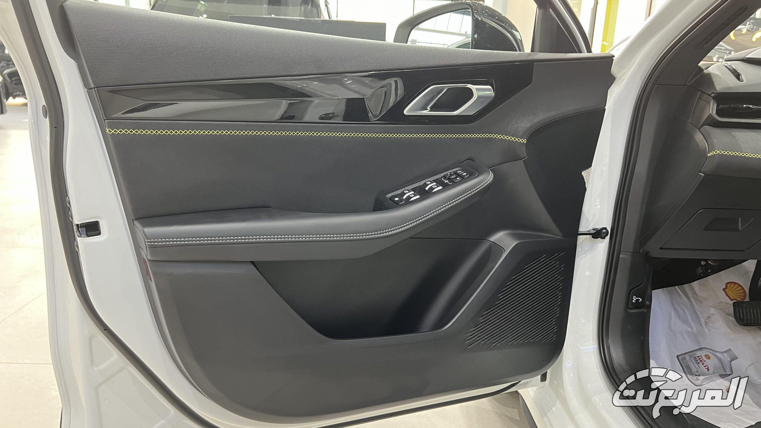 ننتقل من الخارج إلى الداخل حيث نرى المقصورة ذات الطابع الفاخر لـ لينك آند كو 03 2024 والتي تحمل تصميم عملي ورياضي يركز على السائق لتقديم تجربة حماسية على الطريق، كما تحصل على لمسات فخمة نراها في الخامات الجلدية على المقاعد مع أجزاء مختلفة من المقصورة.