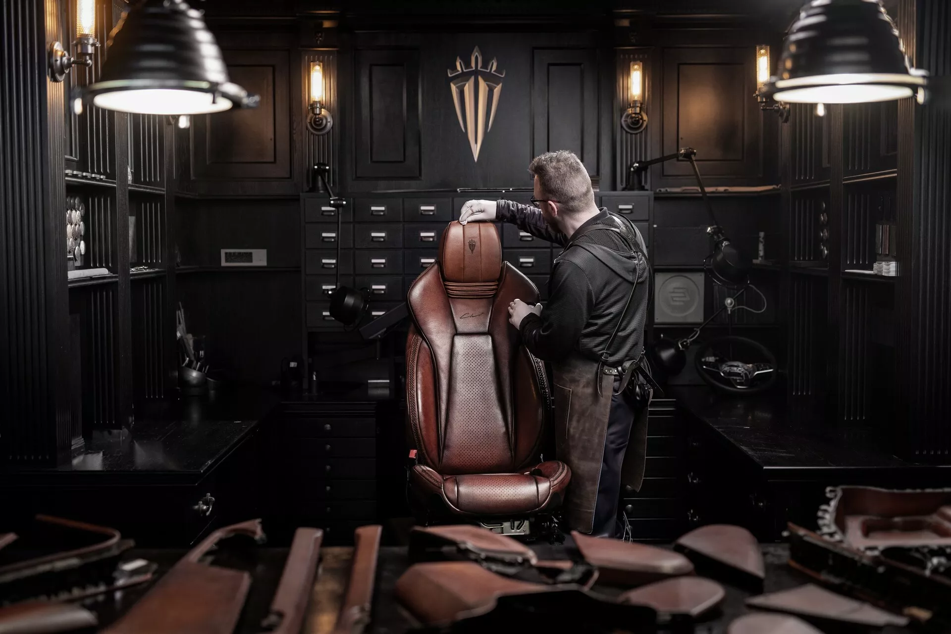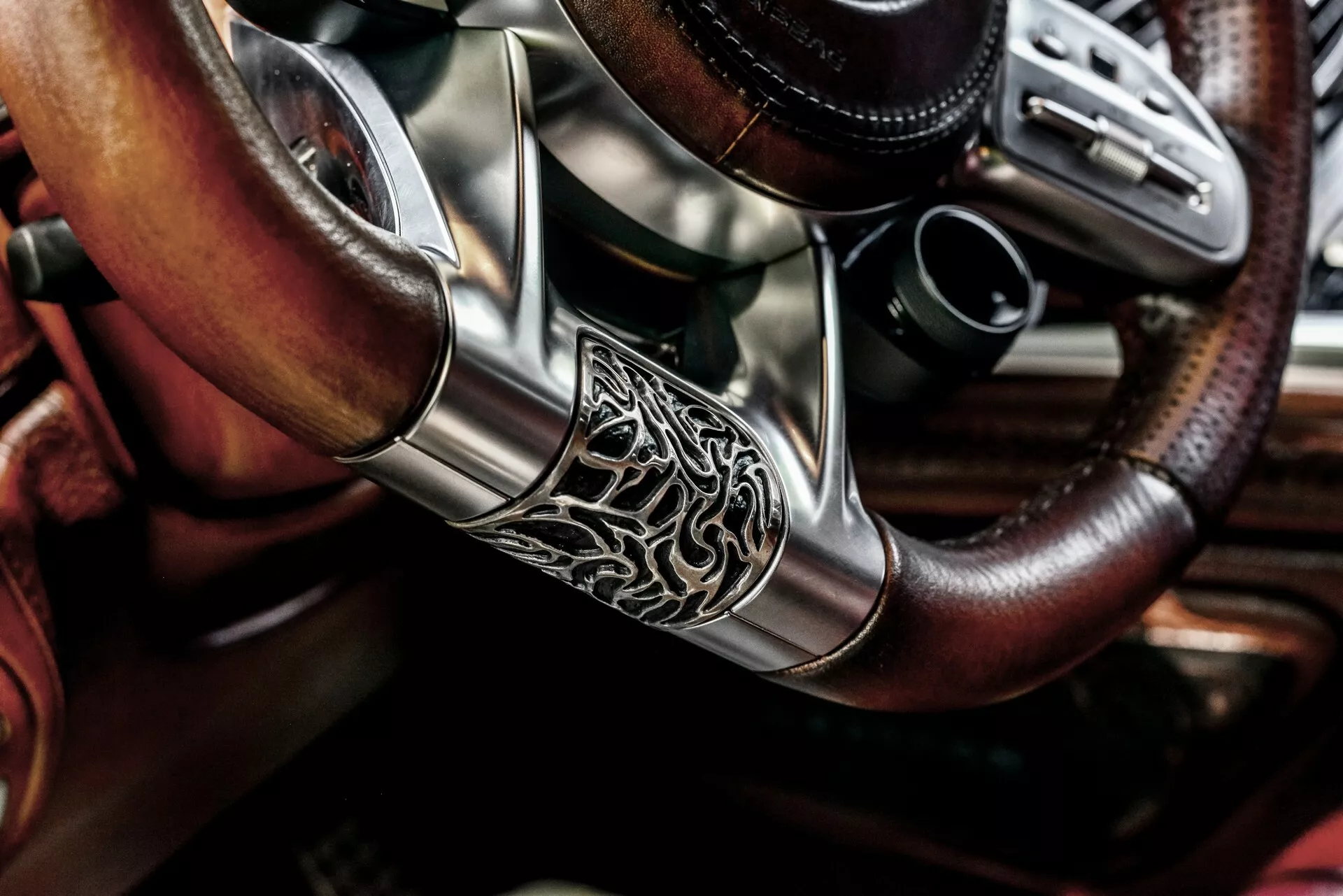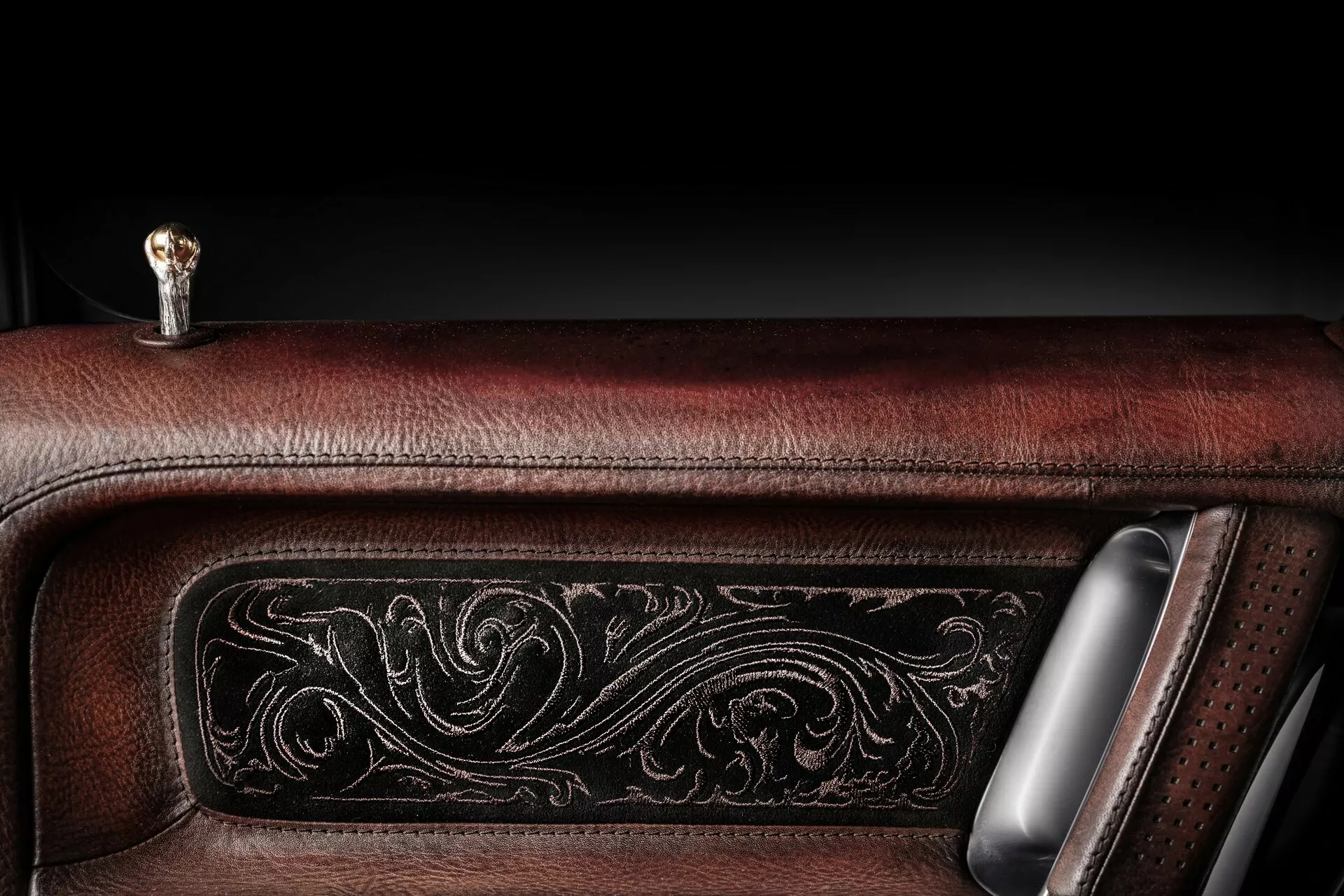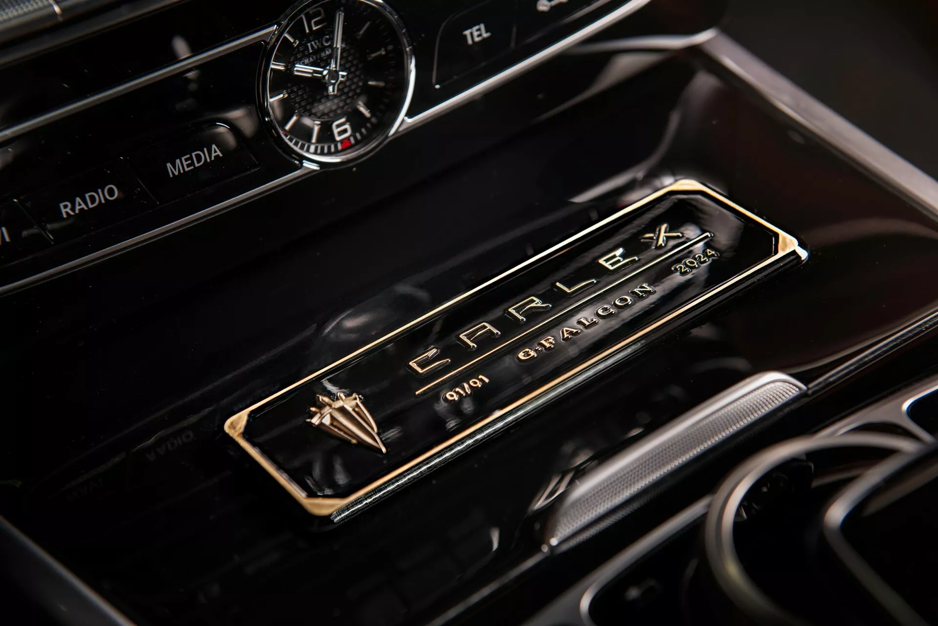 كما اهتمت كارليكس بتعديل الداخلية كذلك وإضافة جلود حمراء داكنة للمقاعد والمقود ولوحة القيادة، مع رسومات قماشية مخيطة باليد على الأبواب والكونسول الأوسط، ومن اللمسات الجميلة الأخرى هو تصميم خاص لأقفال الأبواب بشكل مشابه لمخالب الصقر.