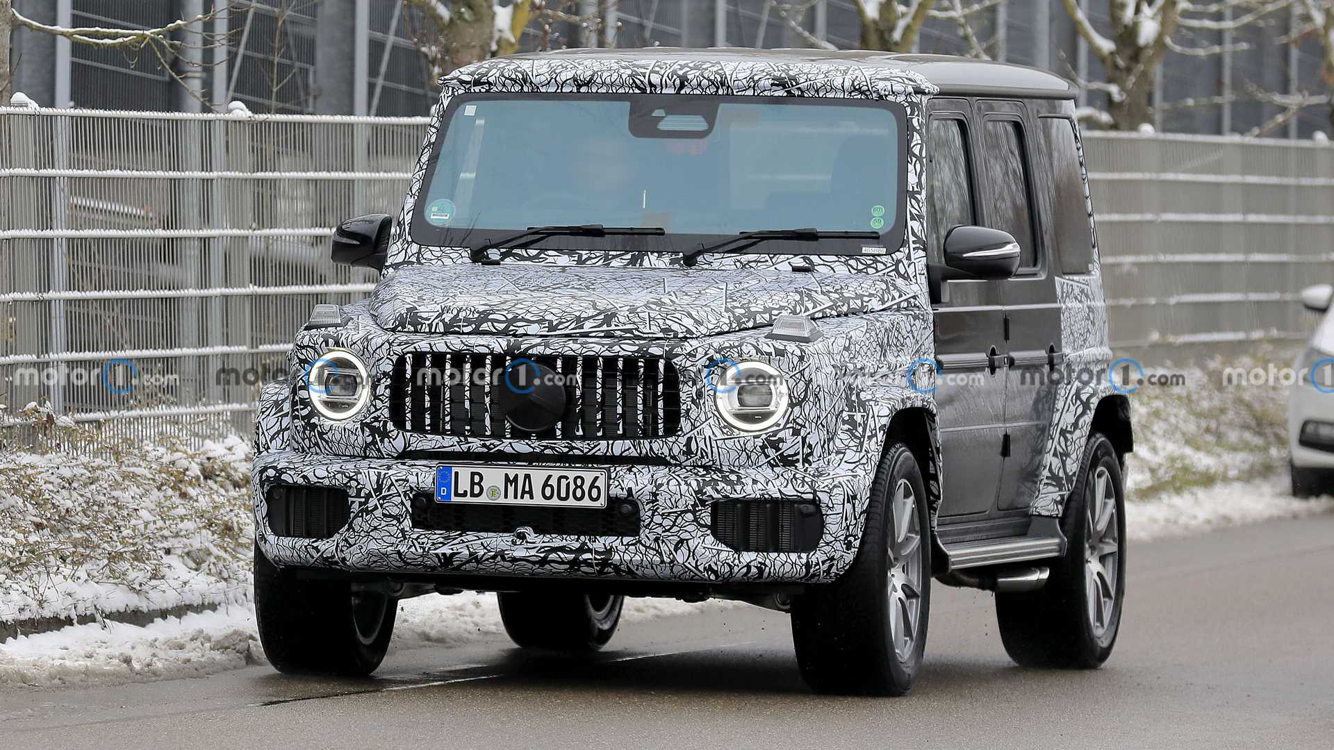 ظهرت مرسيدس جي كلاس في شتوتغارت، ألمانيا، بتحديثات بسيطة بالمصد الأمامي بالشبكات الهوائية وبعض الإنحناءات التصميمية الجديدة للمساعدة على التعرف على نسخة الفيس ليفت من النسخة الحالية، ويظهر المقطع الخلفي من جي كلاس بنفس التصميم الحالي بدون تغيرات، حيث يصعب أيضاً التعرف على التحديثات الطفيفة بسبب الغطاء التمويهي.