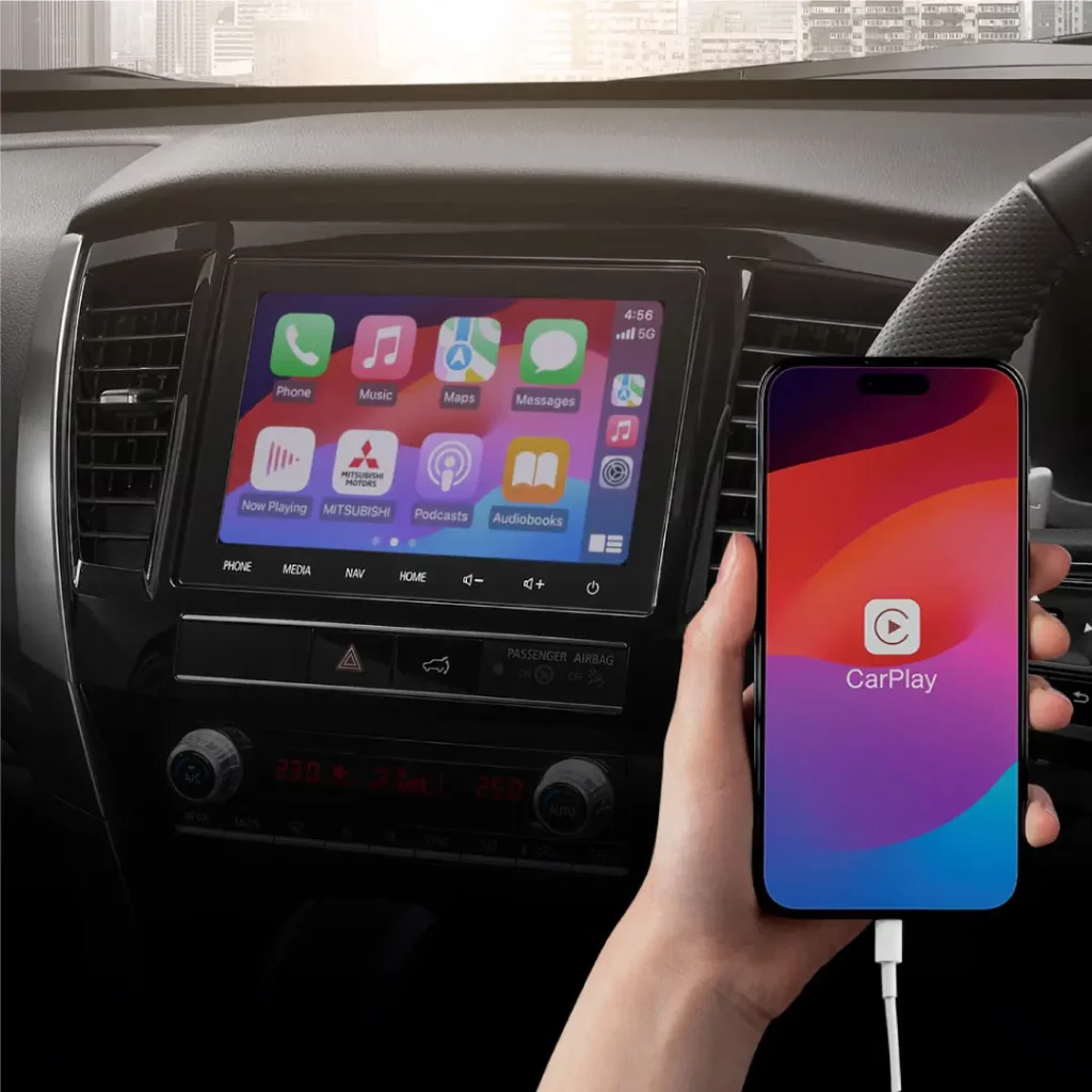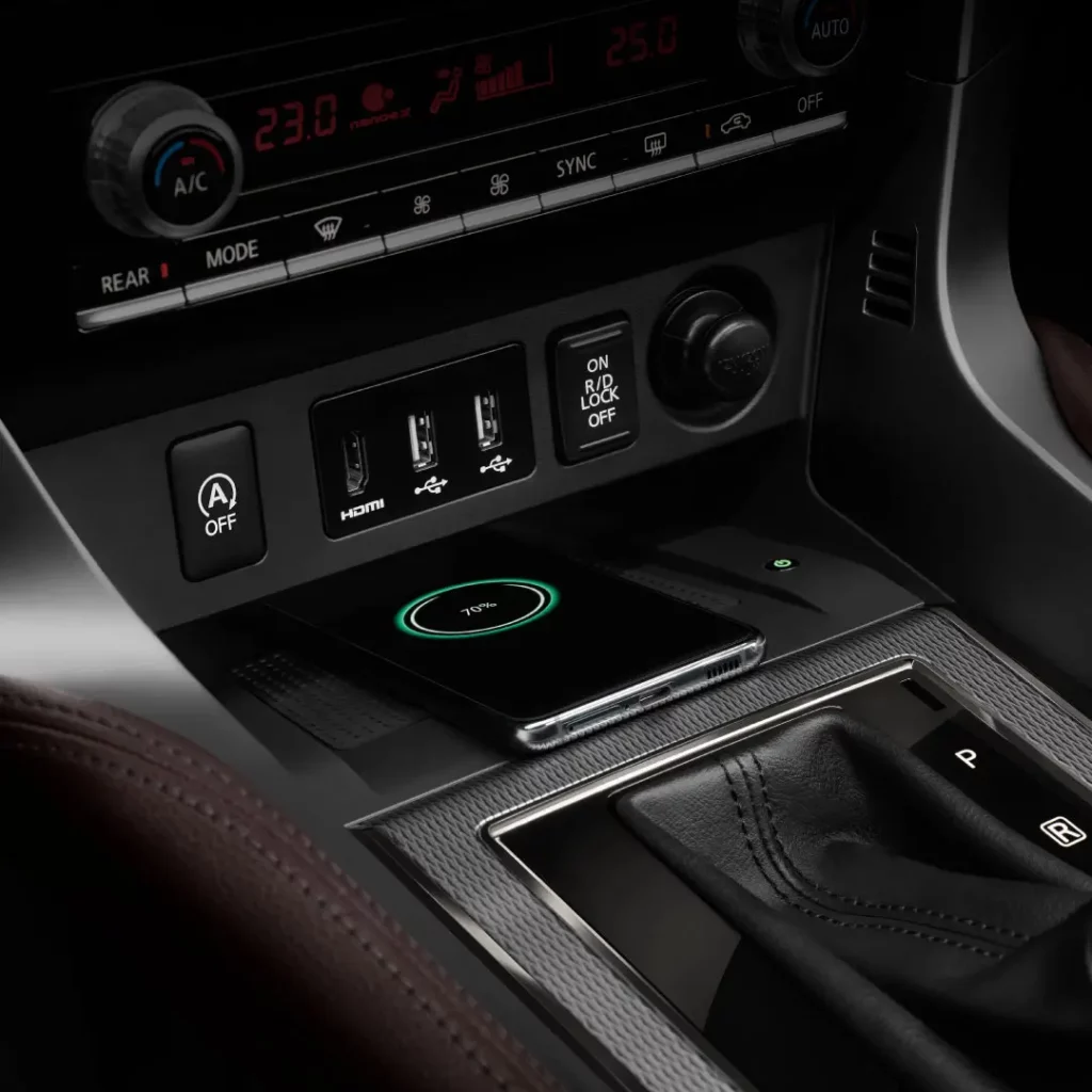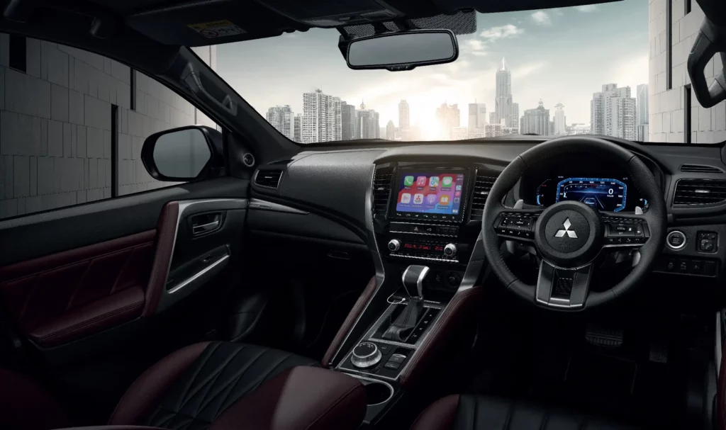 حصلت ميتسوبيشي باجيرو سبورت 2024 على عجلة قيادة جديدة ثلاثية الأضلاع، مع رسومات جديدة للوحة العدادات الرقمية المقدمة بقياس 8 إنش، مع خيارات جديدة للجلد المستخدم بلوحة القيادة والمقاعد، مع لمسات من التيتانيوم الداكن.