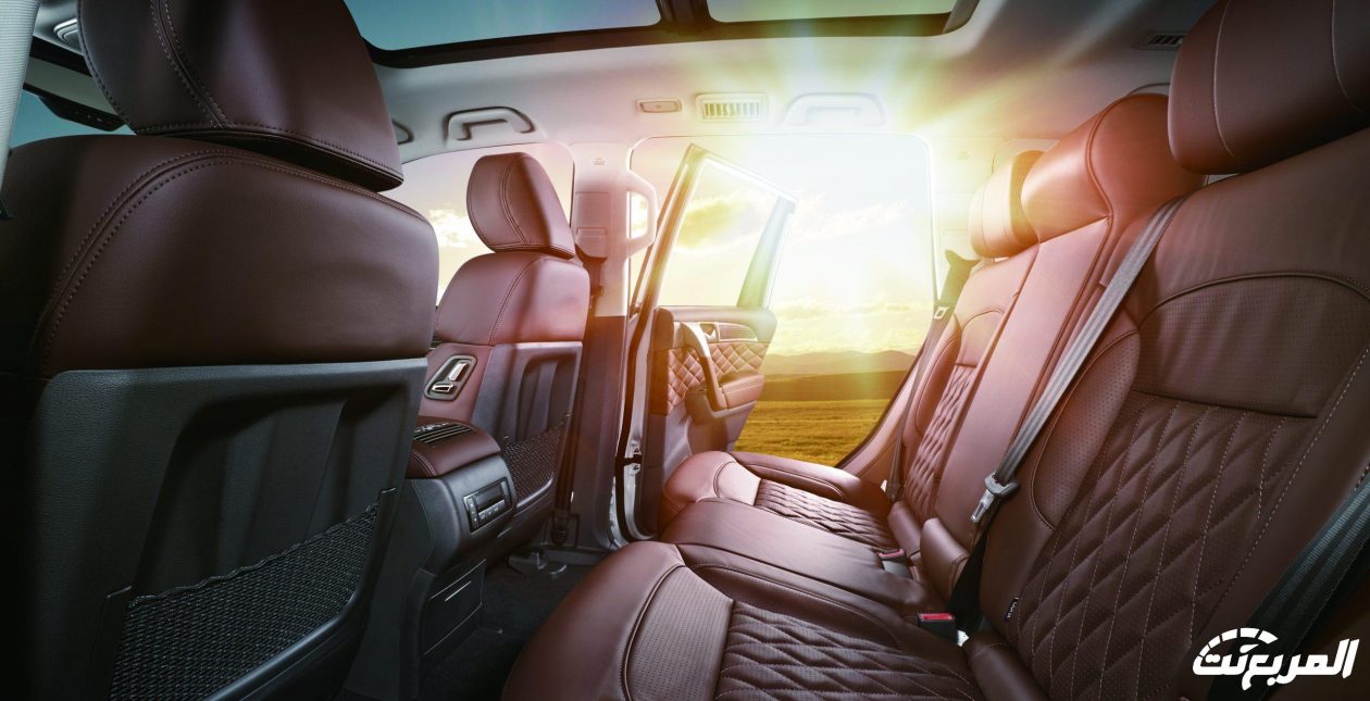 أما مقاعد الصف الثاني فهي تأتي داعمة لإمكانية التعديل اليدوي في اتجاهين فقط، فيما تأتي مقاعد الصف الثالث داعمة لإمكانية الطي بشكل كهربائي من أجل مساحة أكبر لتخزين للأمتعة، وبالنسبة لباقي التجهيزات المتوفرة داخل المقصورة فتأتي كالآتي: