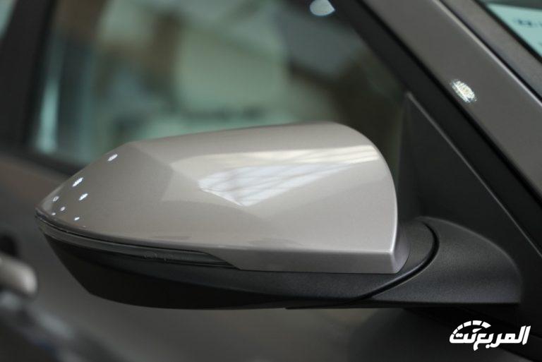 نرى الشبك بالجهة السفلية ناحية المصد الأمامي لكي يقوم بدوره في التعزيز من تهوئة المحرك، وبالانتقال إلى الجهة الجانبية فالمرآة بتعديل كهربائي مع إشارات الانعطاف، كما تكون المقابض الخاصة بالأبواب بنفس لون السيارة.