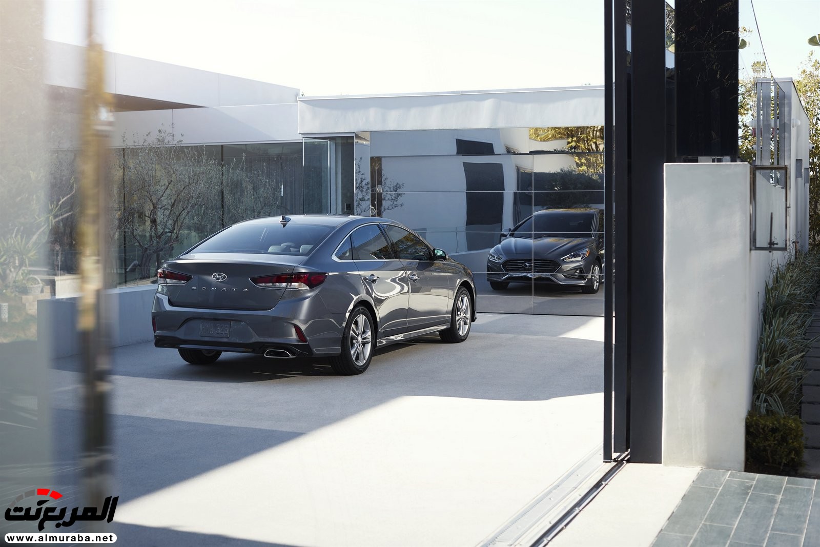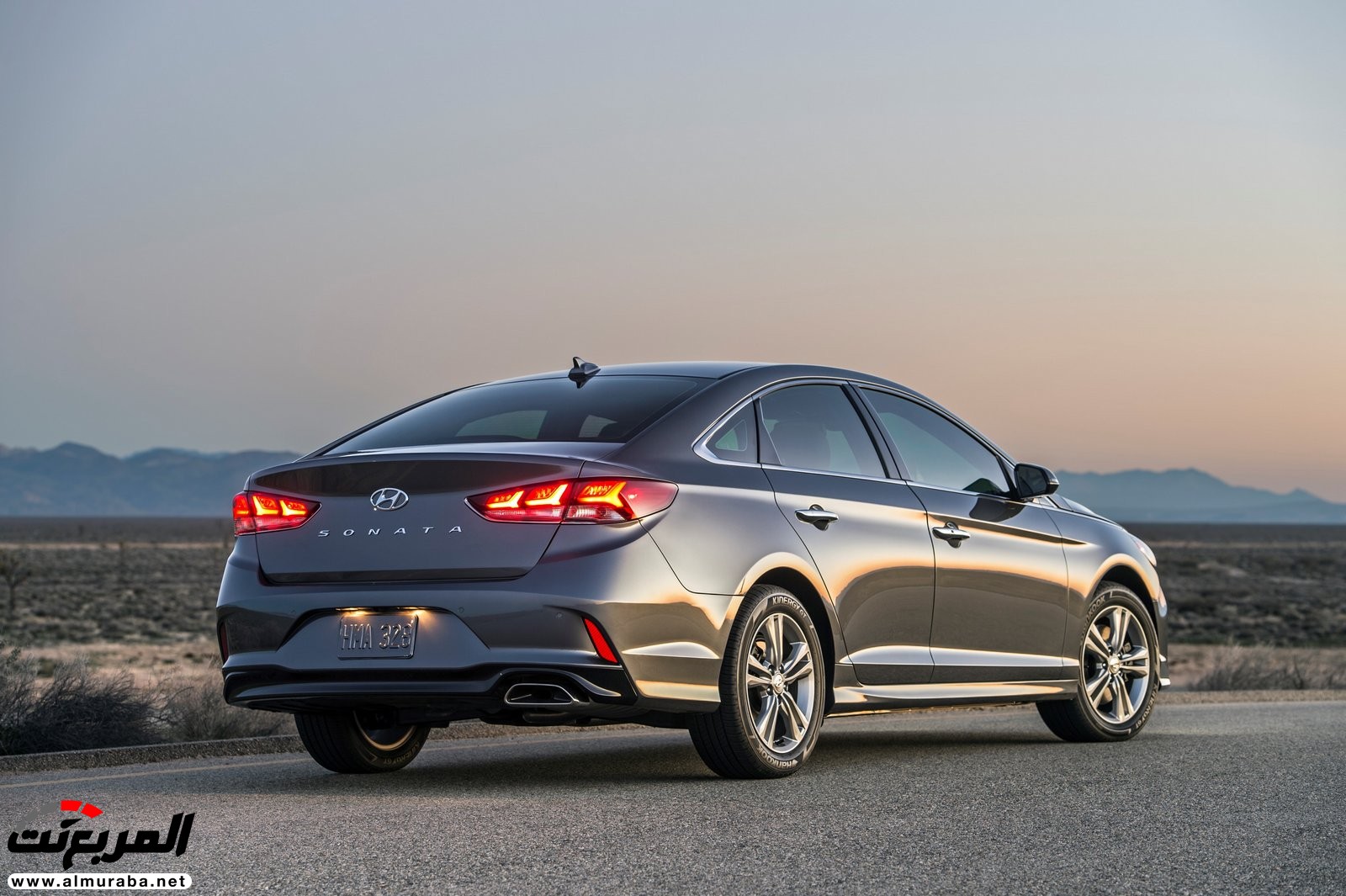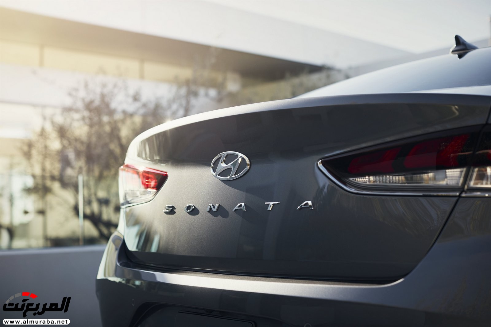 وبصريًّا يقترب الموديلان القياسيان من التطابق, ويكمن الاختلاف في كون نسخة أمريكا الشمالية تتميز بمقدمة أكثر رياضية تتضمن شبكة مبرد أضخم تُحيط بها المصابيح الأمامية الـ LED, وفي خلف السوناتا 2018 يمكننا رؤية المصابيح الجديدة وشارة هيونداي الكبيرة نسبيًّا إلى جانب الجنوط الجديدة.