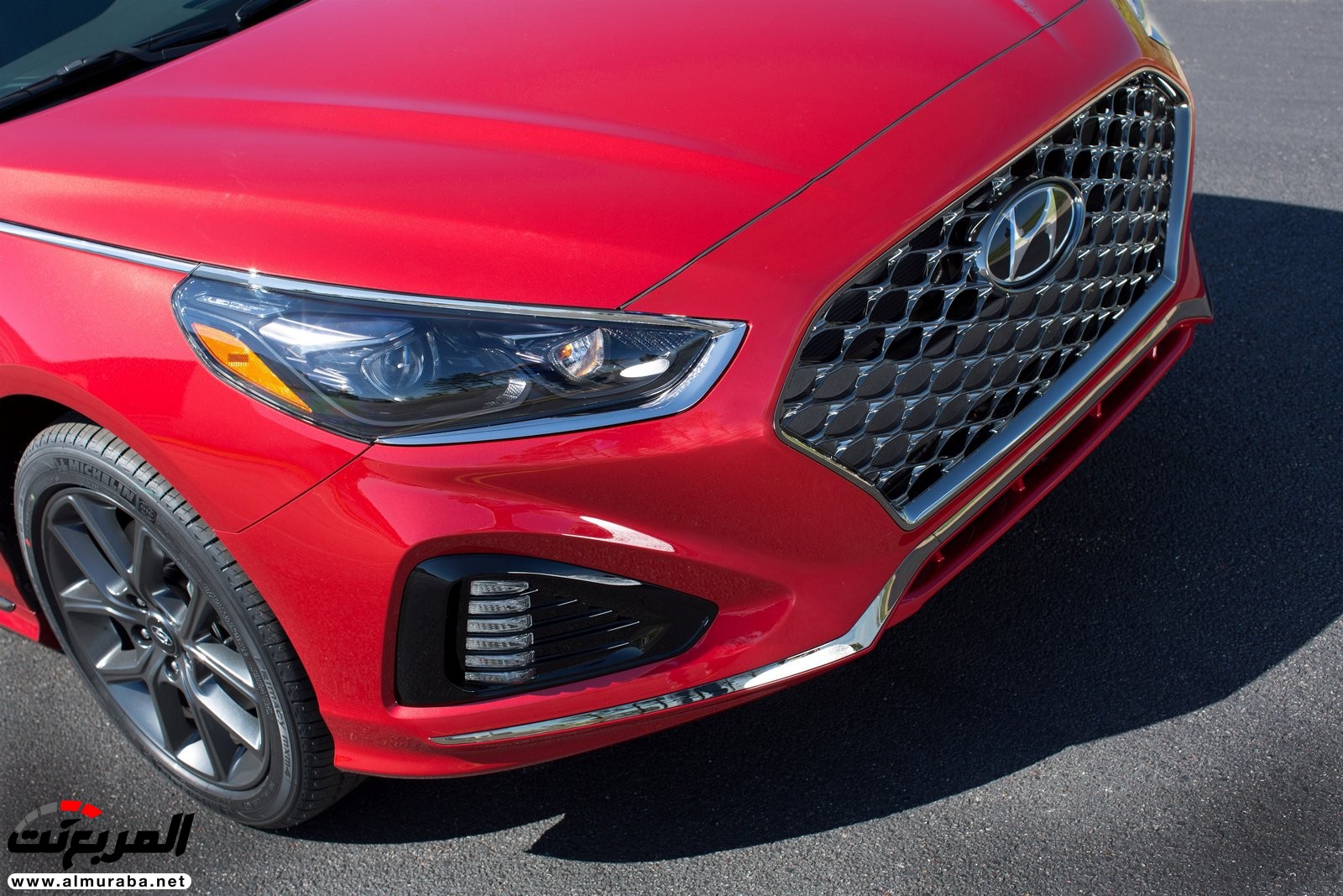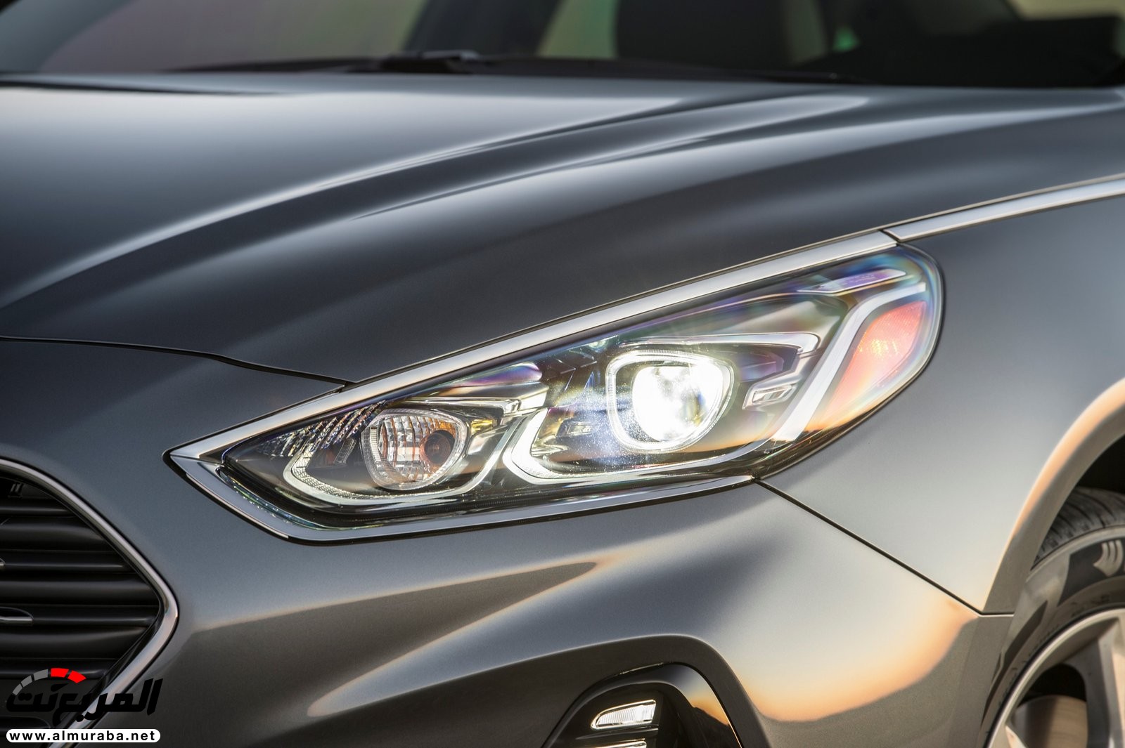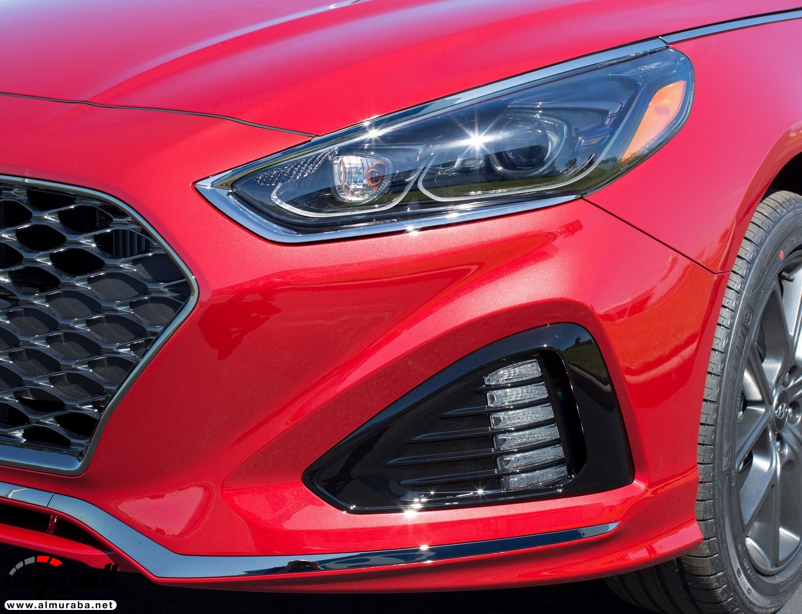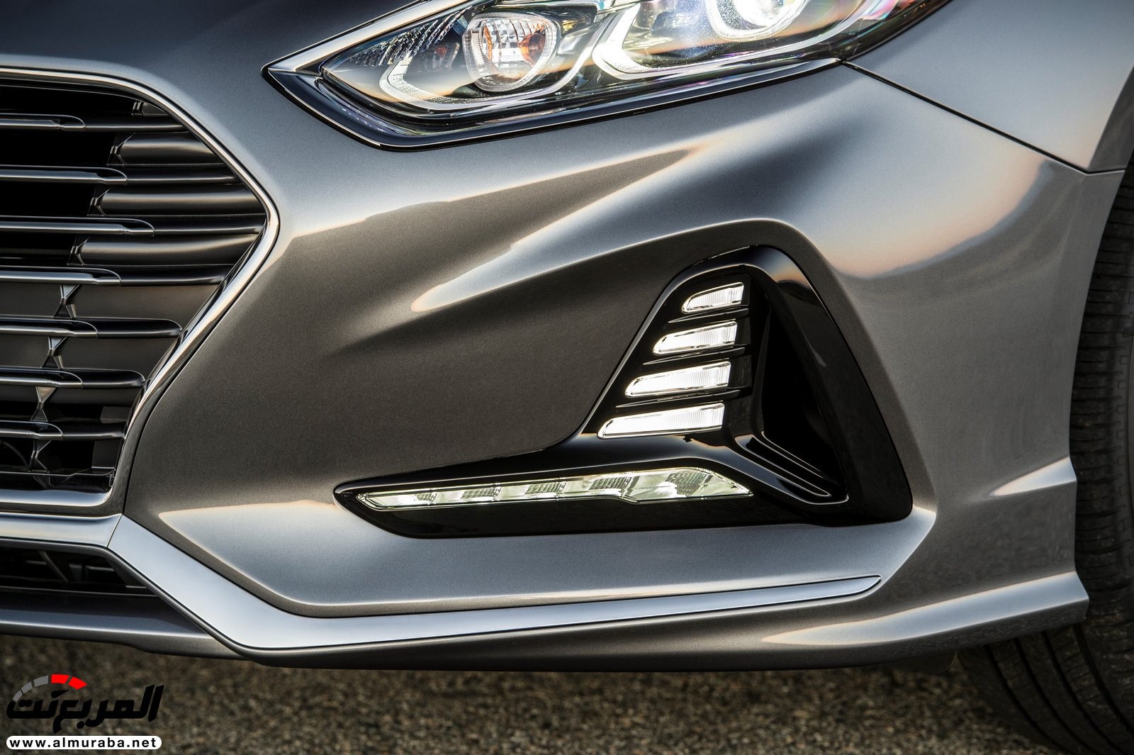 وبصريًّا يقترب الموديلان القياسيان من التطابق, ويكمن الاختلاف في كون نسخة أمريكا الشمالية تتميز بمقدمة أكثر رياضية تتضمن شبكة مبرد أضخم تُحيط بها المصابيح الأمامية الـ LED, وفي خلف السوناتا 2018 يمكننا رؤية المصابيح الجديدة وشارة هيونداي الكبيرة نسبيًّا إلى جانب الجنوط الجديدة.