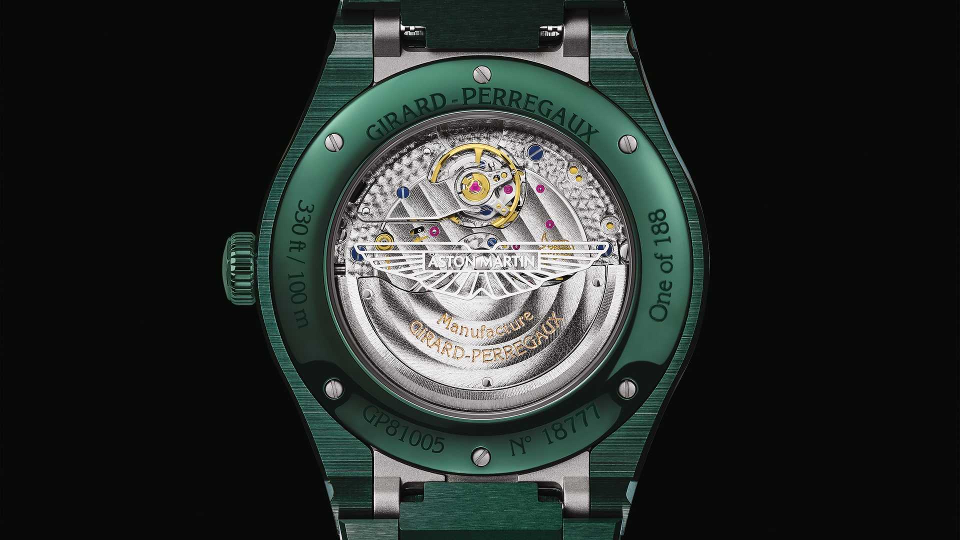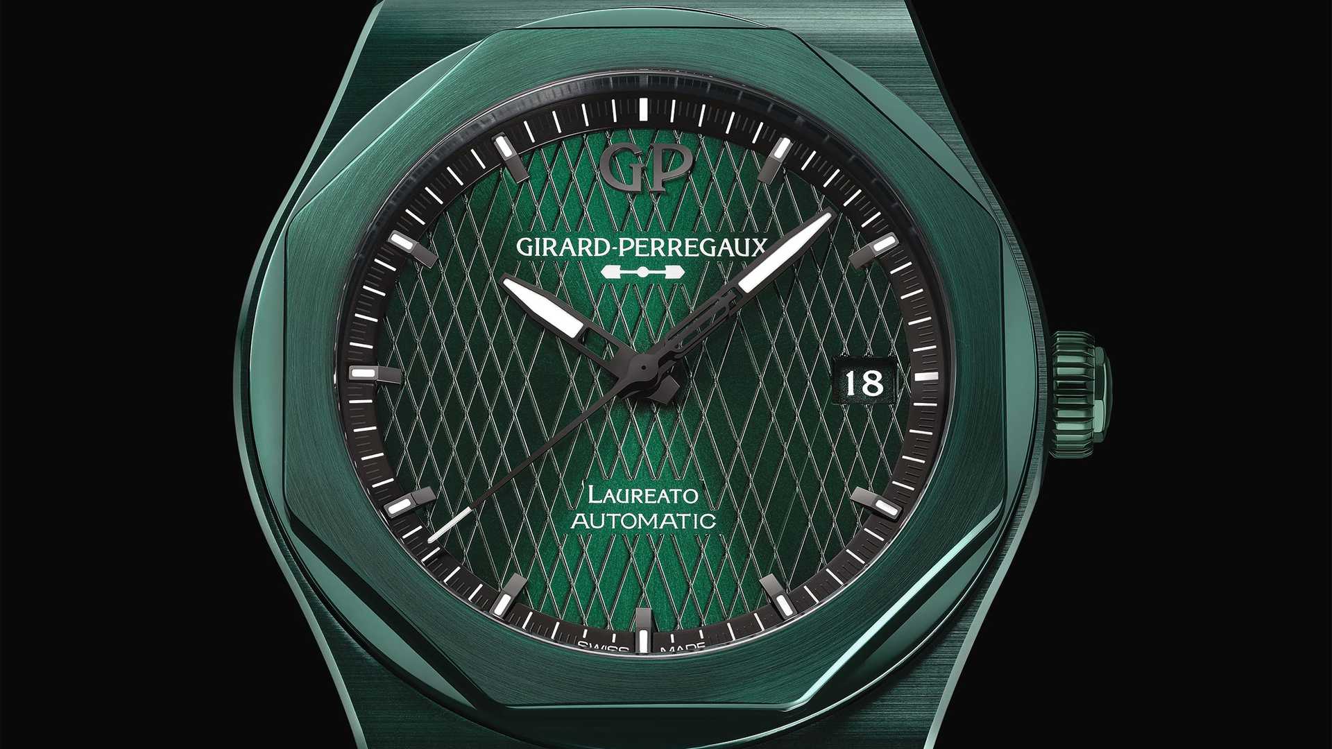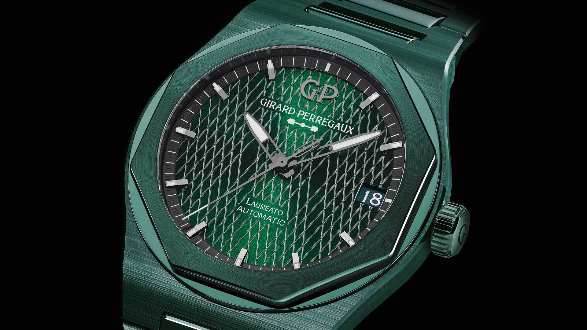 ويبدو أن التعاون بين الشركتين أصبح تقليداً سنوياً الآن، مع الإعلان عن إصدار G-P Laureato استون مارتن الأخضر السيراميكي الجديد بغلاف وسوار مصنوعين من السيراميك خفيف الوزن، وتصميم ماسّي رائع على قرص الساعة.