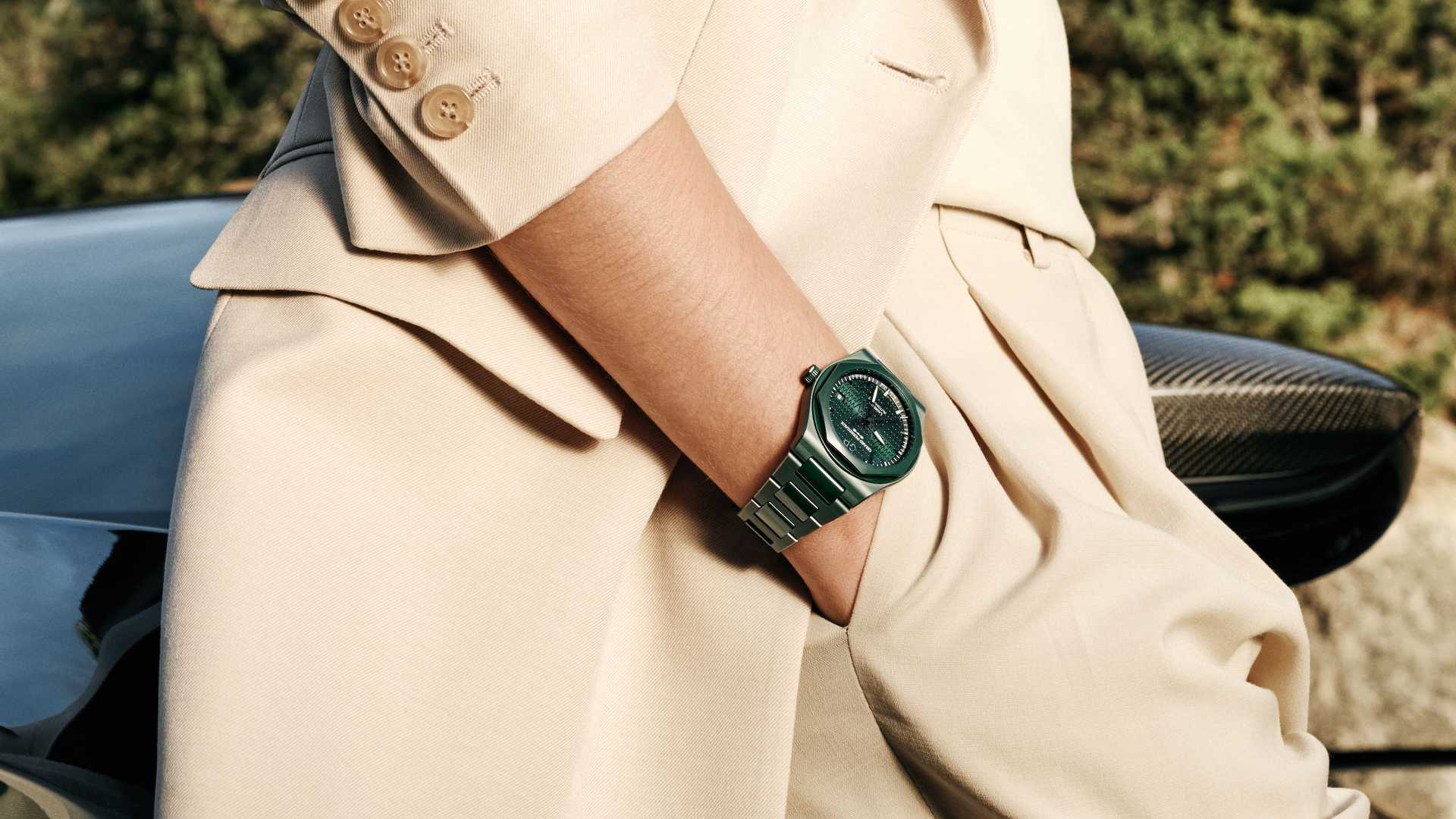 وتحظى الساعة بلون أخضر جذاب، وهو نفسه لون “أخضر السباقات البريطاني” الذي اشتهرت به بعض سيارات سباق استون مارتن، وقد لا يظهر التأثير الجمالي للون الأخضر في الصور ولكن نتوقع أن يكون أخاذاً على المعصم.