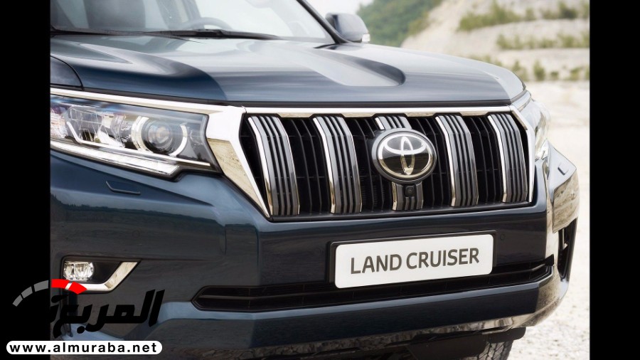 وعلى امتداد الشبك، نرى المصابيح الأمامية القوية التي تعمل بتقنية الـ LED ويُدمج بها مصابيح نهارية تعمل أيضاً بتقنية الـ LED، وتأتي المصابيح بتصميم حاد لنظرة شرسة، كما تأتي مع كشافات للضباب في الأسفل مع فتحات تهوية وشبك سفلي يوفر برودة أكبر للمحرك، كما يُعزز المصد الأمامي الكبير والذي يحمل بصمة لاندكروزر برادو من مظهر السيارة القوي على الطريق.