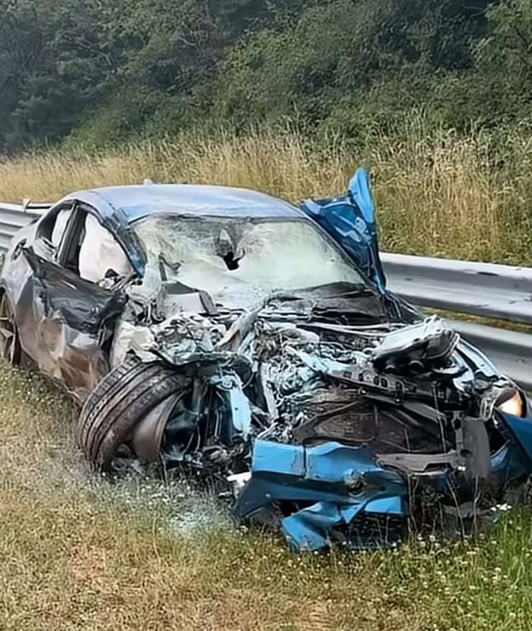 وفي الفيديوهات اللاحقة، ظهر أحد أجزاء نظام التعليق الأمامي في البورشه، بما فيه قرص المكابح وكليبر الفرامل، ملقى على بعد أكثر من 30 متراً من موقع الاصطدام. أما جسم السيارة الأمامي حتى الحاجز الناري فقد تم اقتلاعه بالكامل. البي إم دبليو لم تكن أفضل حالاً، وتعرّضت أيضاً لأضرار مروعة.
