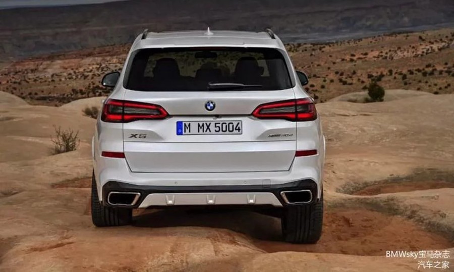 التصميم الخارجي استوحى عناصره من بي إم دبليو X3 الحالية وX7 القادمة، والتي رأيناها على هيئة سيارة اختبارية، وإن حصلت X5 الجديدة على إضافات تصميم فريدة وخاصة بها، مثل زيادة حجم الشبك الأمامي بشكل ملحوظ وإضافة المزيد من المصابيح الخلفية النحيلة.