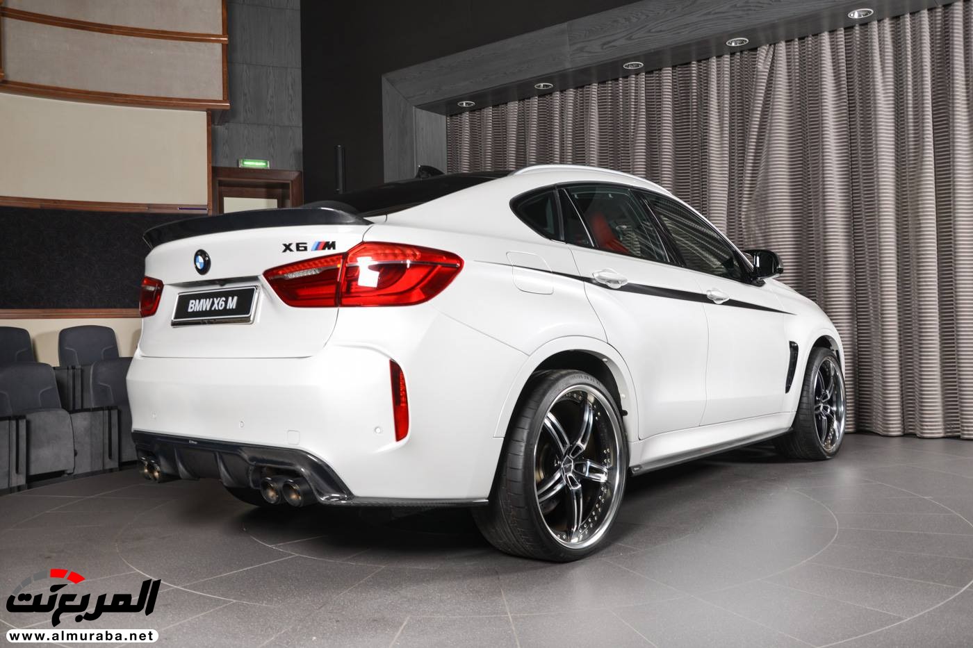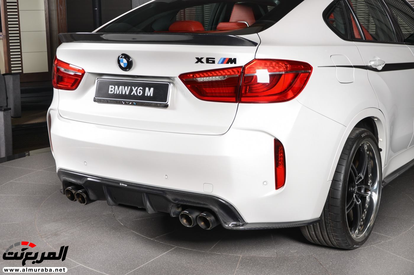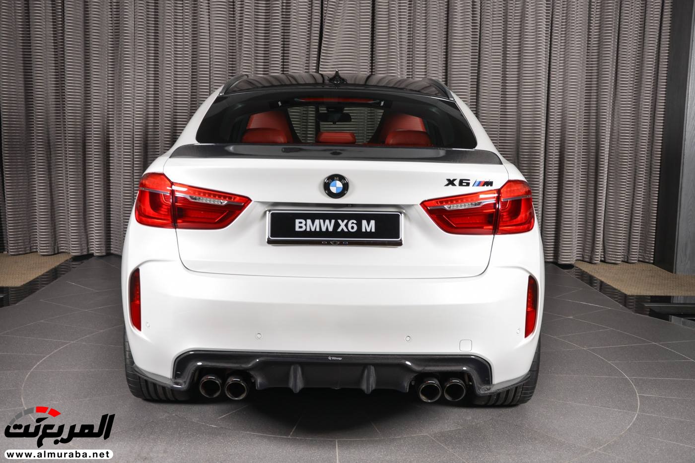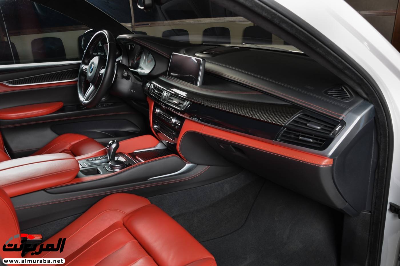 كما حصلت X6 إم المعدلة على نظام عادم AkraPovic جديد وجنوط بطول 23 بوصة ولمسات سوداء على شبكة التهوية والرفرف والسقف، وأغطية مرايا جانبية من ألياف الكربون.