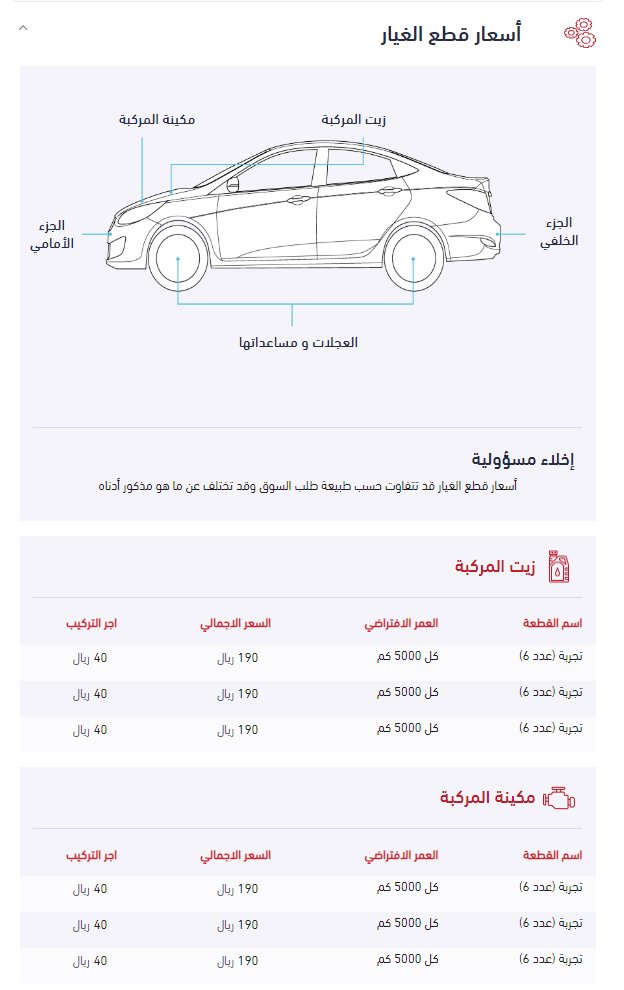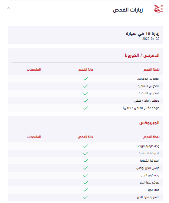 - بيانات الصيانة و والفحص الدوري وإصلاحات السيارة.