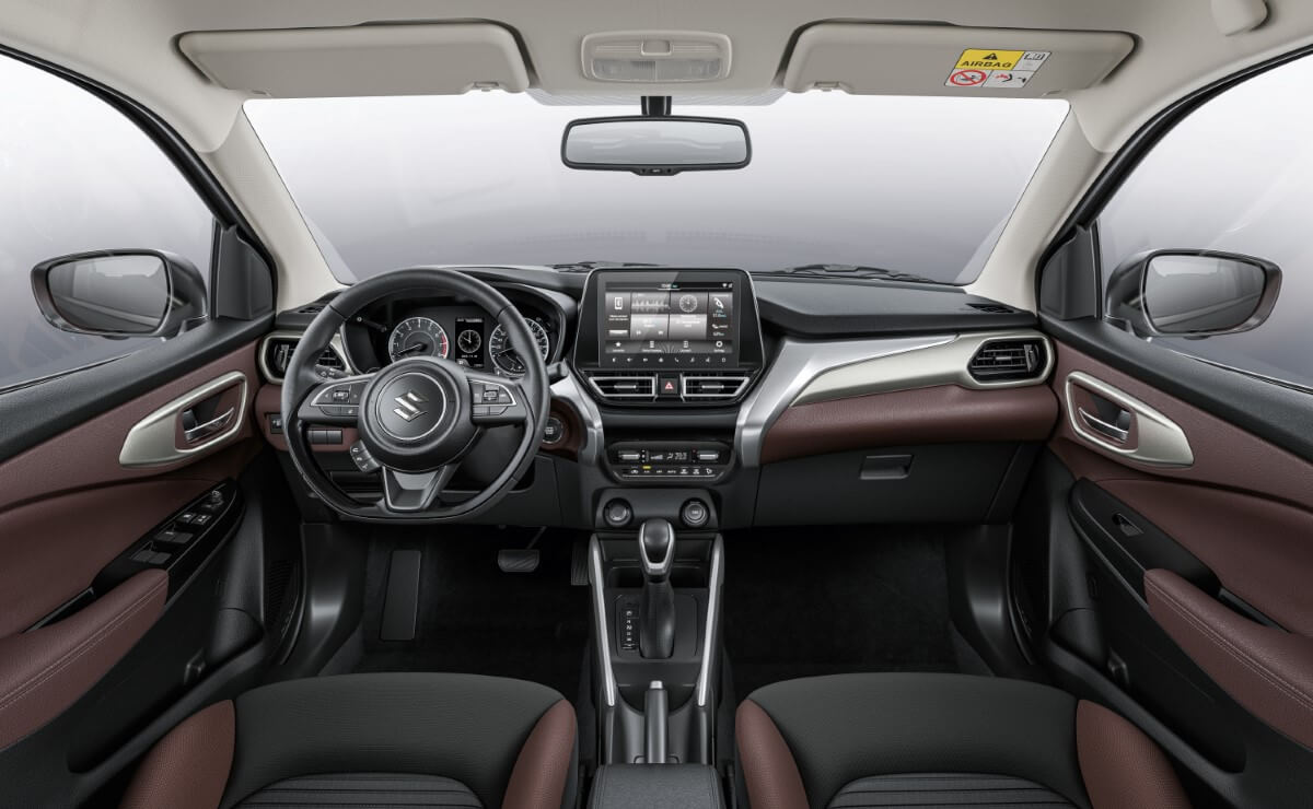 فضلاً عن ماسبق، جاءت عجلة القيادة في سيارة سوزوكي فرونكس FRONX متعددة الوظائف، ومكسوة بالجلد .