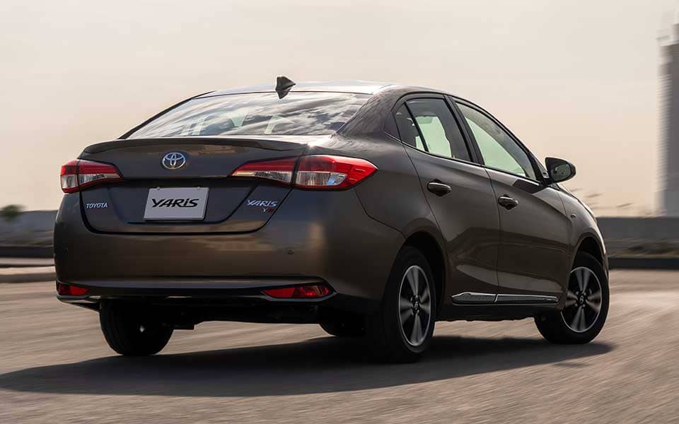 ومن الخلف جاء تصميم المصنع الياباني في سيارته «تويوتا ياريس» مشبعًا بأدق التفاصيل، حيث تم تعزيز مظهر السيارة م الخلف بتكامل الأضواء الخلفية مع التصميم الأفقي الخلفي لتصل حتى الجوانب، بالإضافة إلى جنوط ألمنيوم مقاس 14 بوصة، كما أن السيارة مزودة بمصابيح أمامية وخلفية LED.