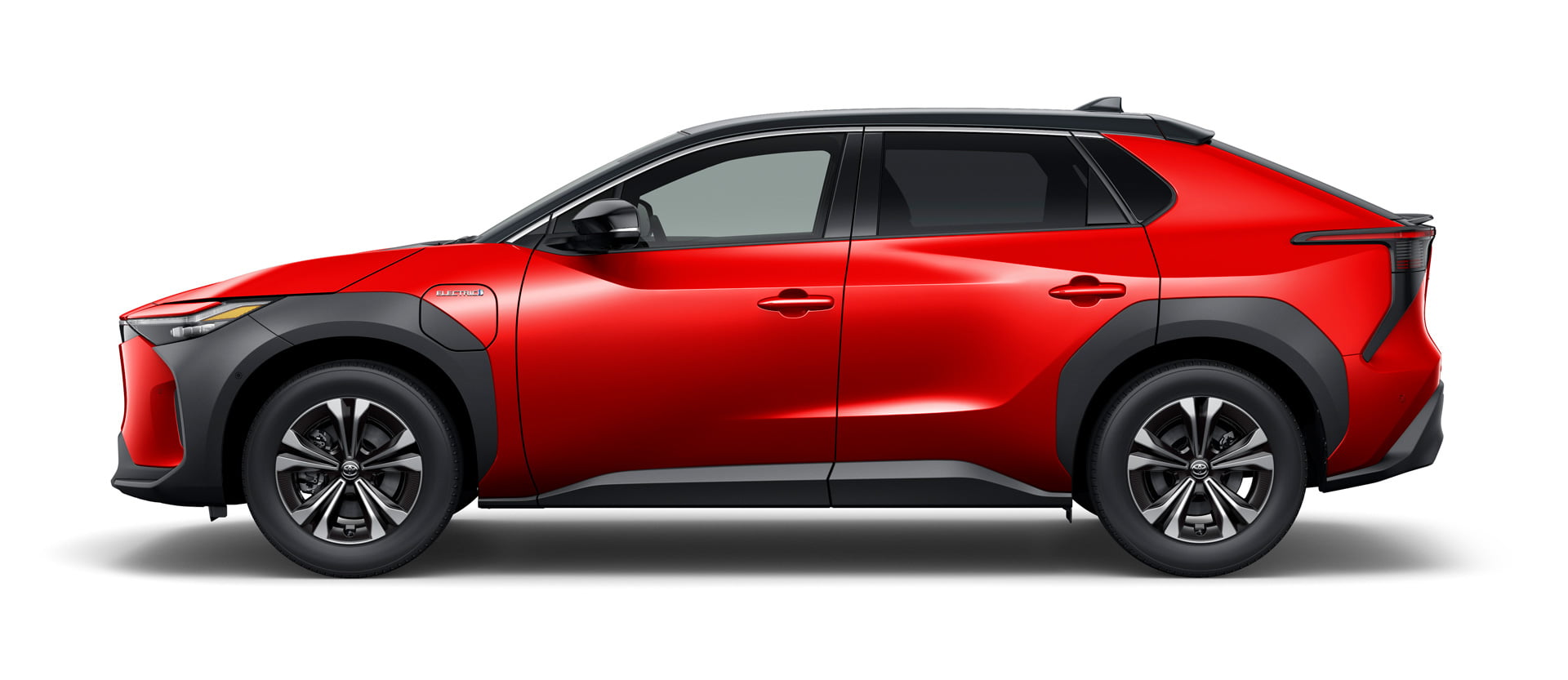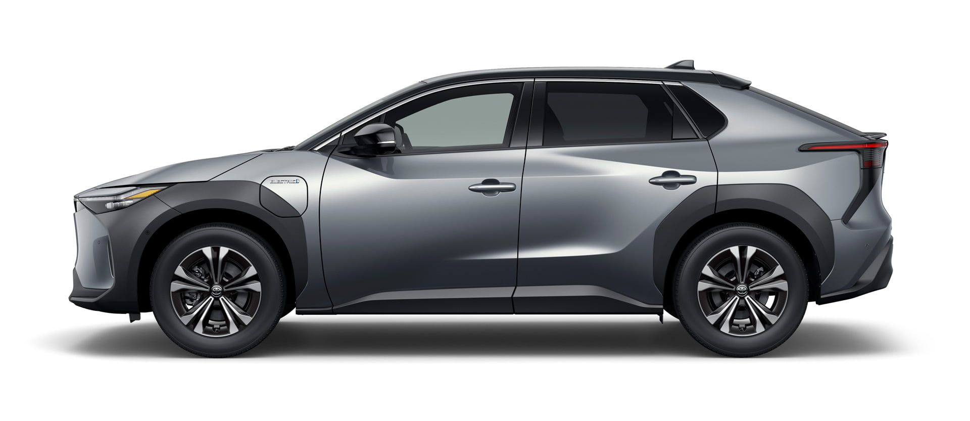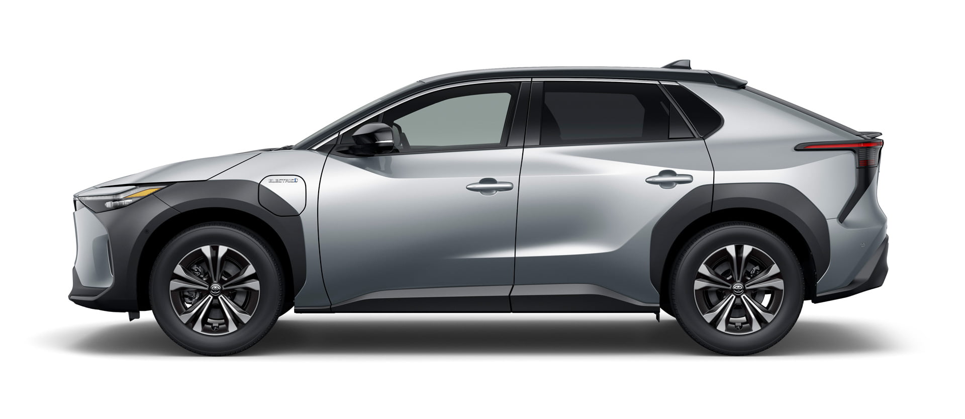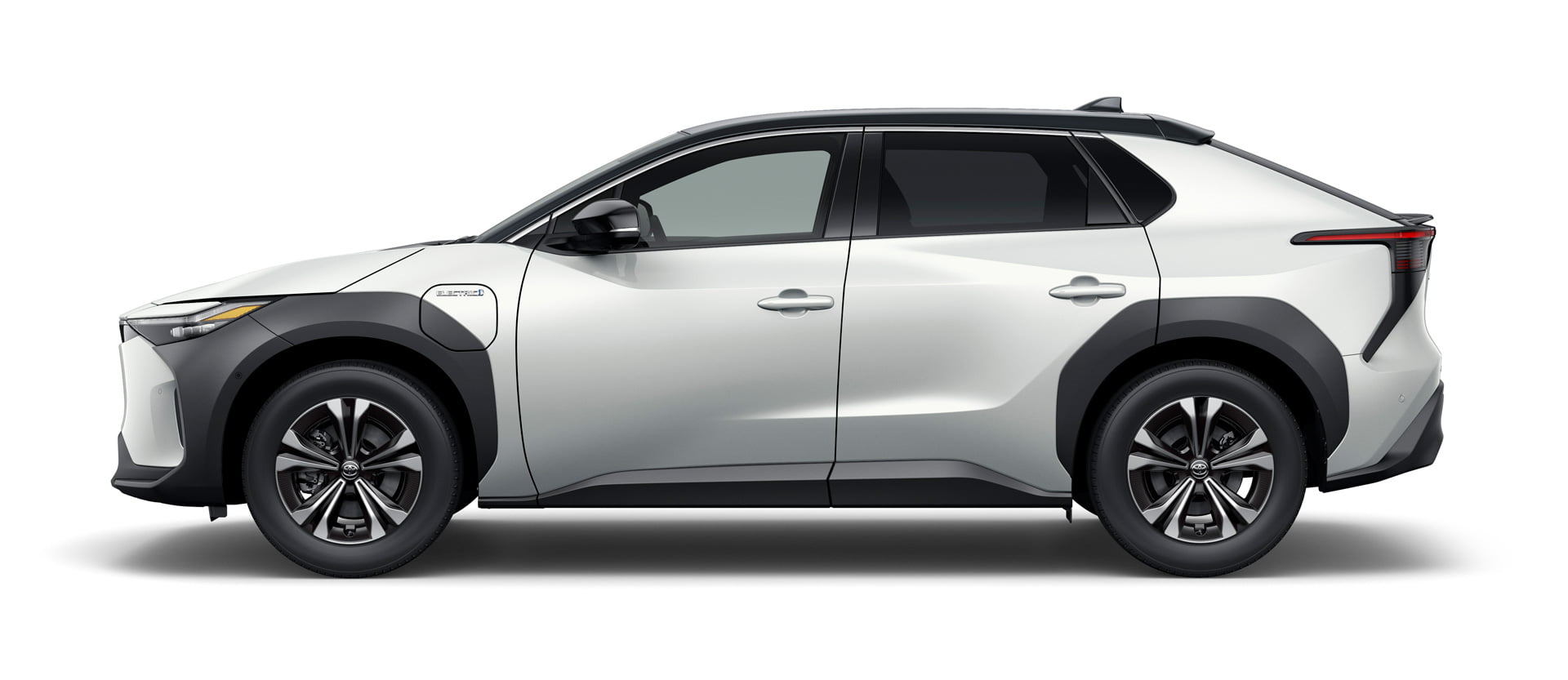تتميز تويوتا bZ4X 2024 بخطوط ديناميكية من مقدمة السيارة إلى المقطع الخلفي مع أقواس عجلات باللون الأسود مع عجلات رياضية بقياس 18 أو 20 إنش، وصولاً للمقطع الخلفي حيث حصلت على مصابيح LED نحيفة وجناح خلفي رياضي.