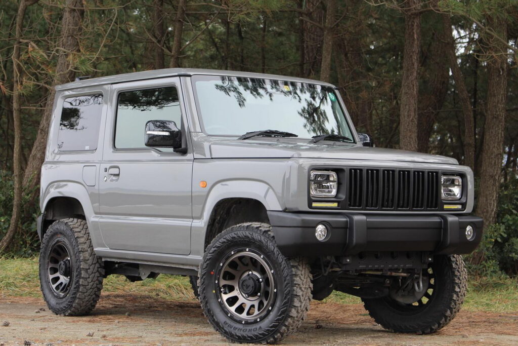 بالإضافة إلى المصابيح والشبكة الأمامية نشاهد المصد الأمامي الجديد والذي يظهر بمصابيح أمامية LED، وصولاً إلى جانبي سوزوكي جمني حيث نشاهد أقواس العجلات الإضافية الكبيرة باللون الأسود مع عجلات رياضية كبيرة وإطارات مخصصة للطرق الوعرة، ويظهر المقطع الخلفي للسيارة بنفس التصميم المعتاد لسوزوكي جمني.